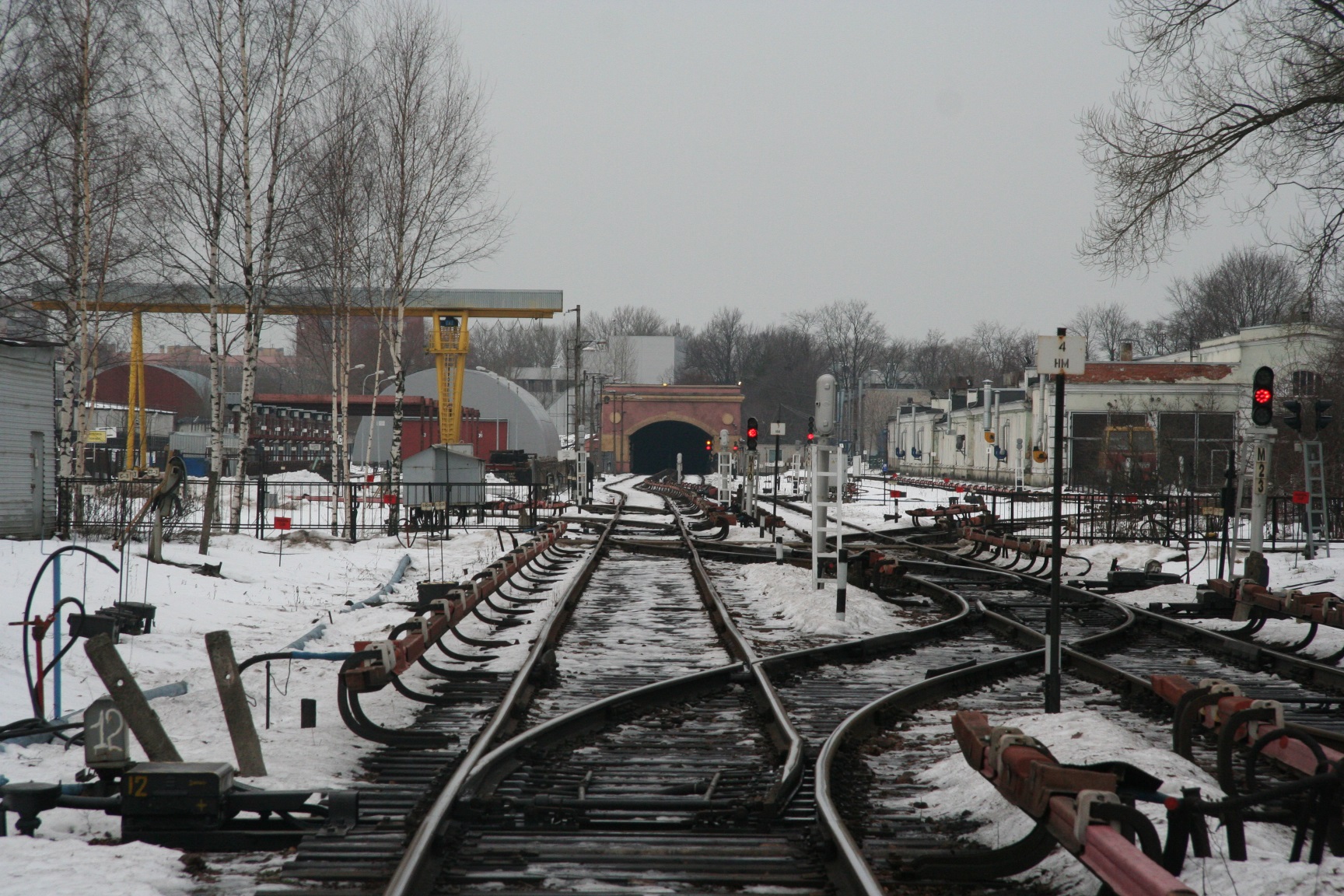 Отличительной особенностью путевого хозяйства ТЧ-1 является непонятный на первый взгляд зигзаг путей перед порталом (на последнем фото он очень хорошо заметен). Кто-то, наверное, может подумать, что это работа "пьяного маркшейдера".