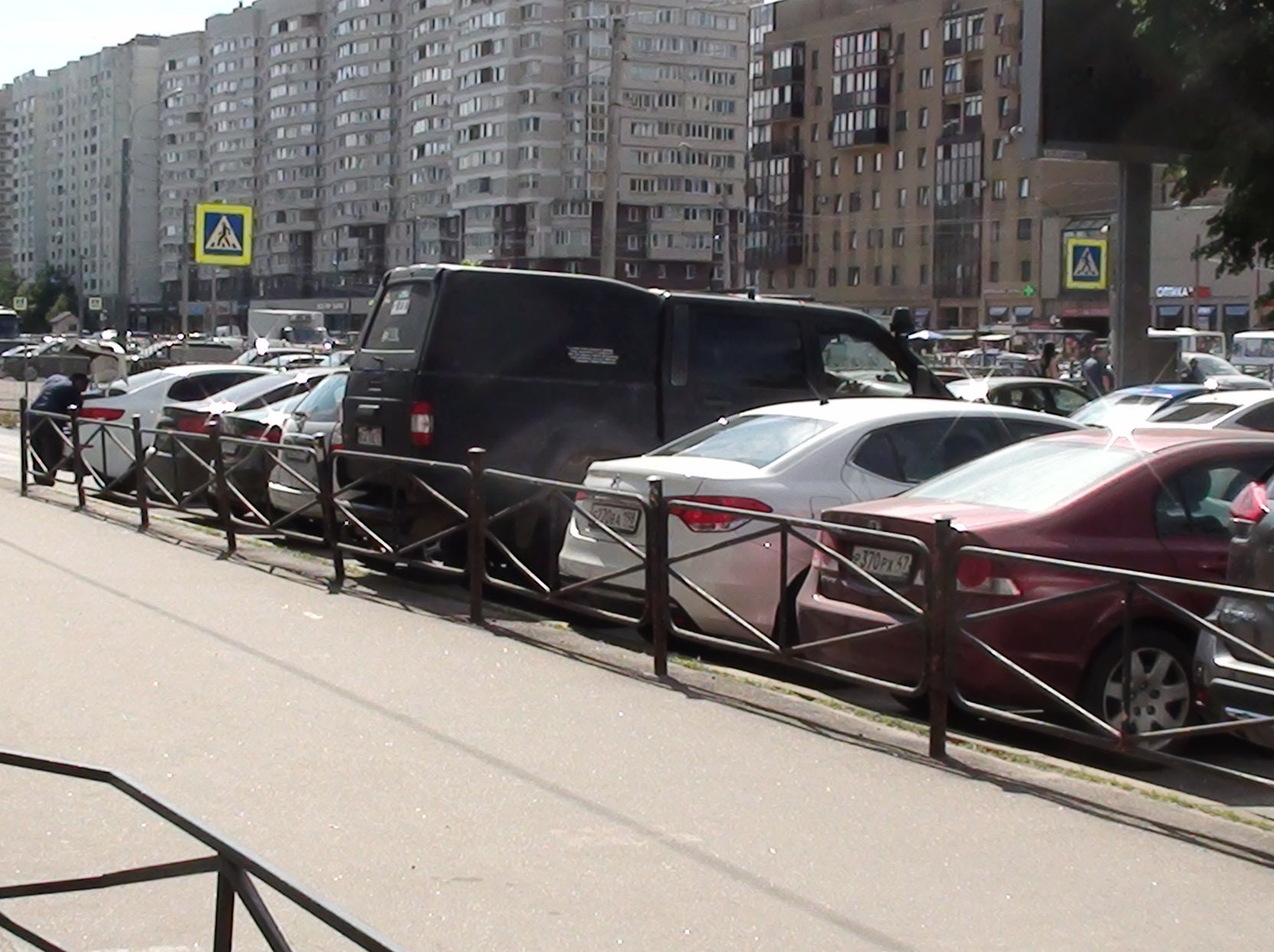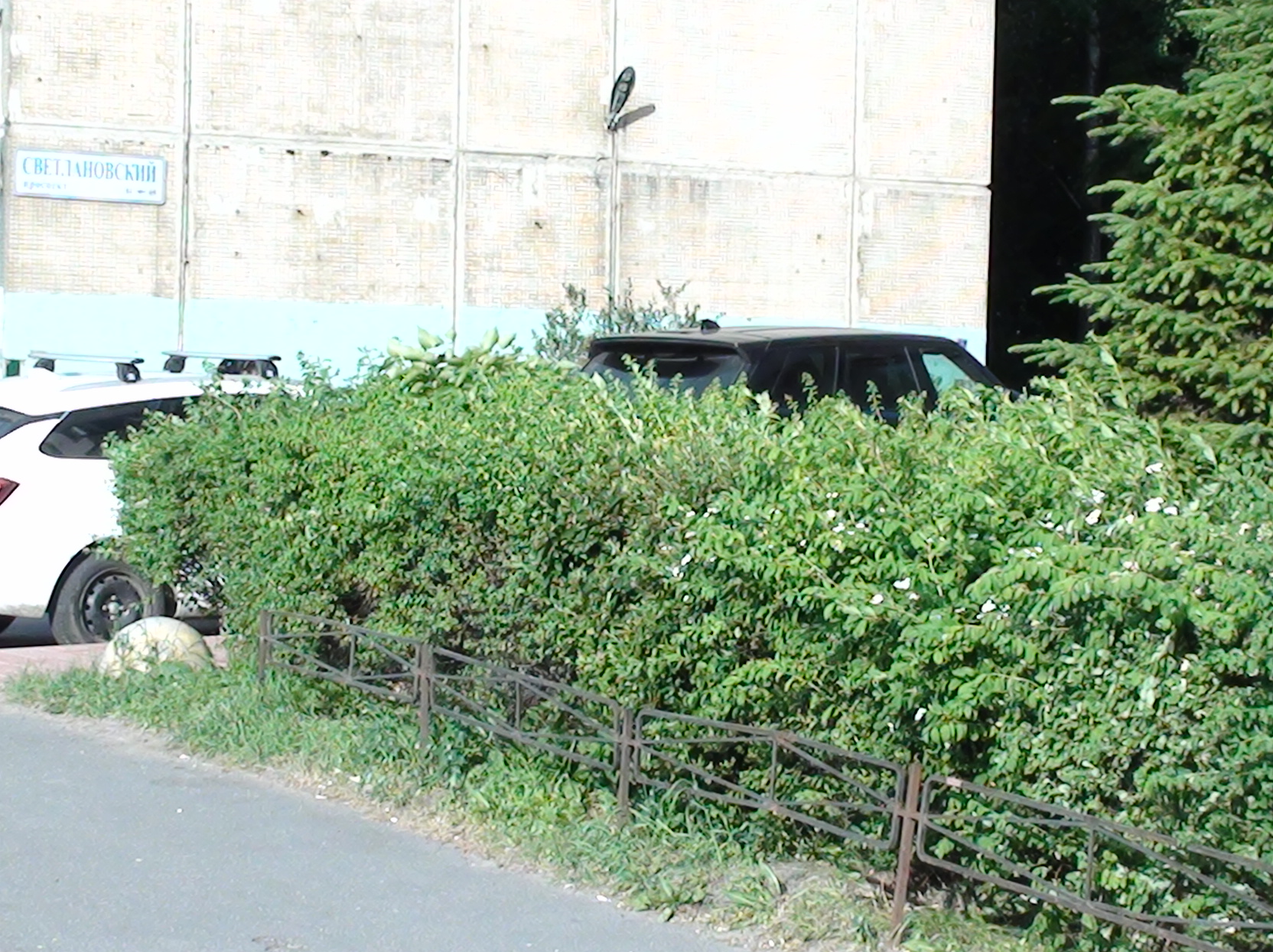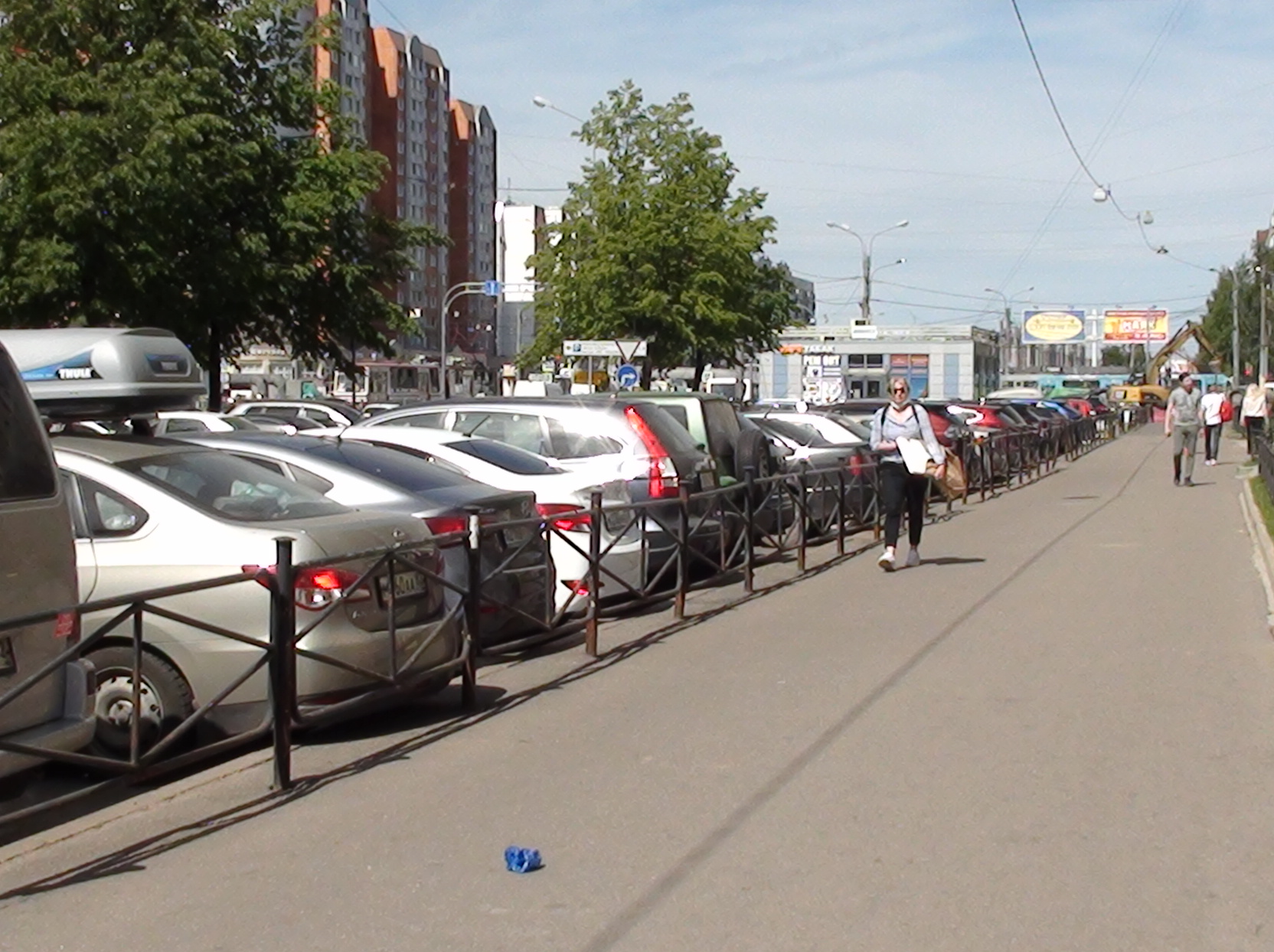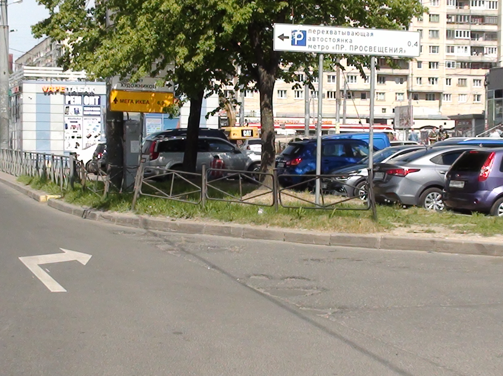 Напротив м. пр. Просвещения. Как со стороны дороги, так и со стороны пешеходной дорожки.