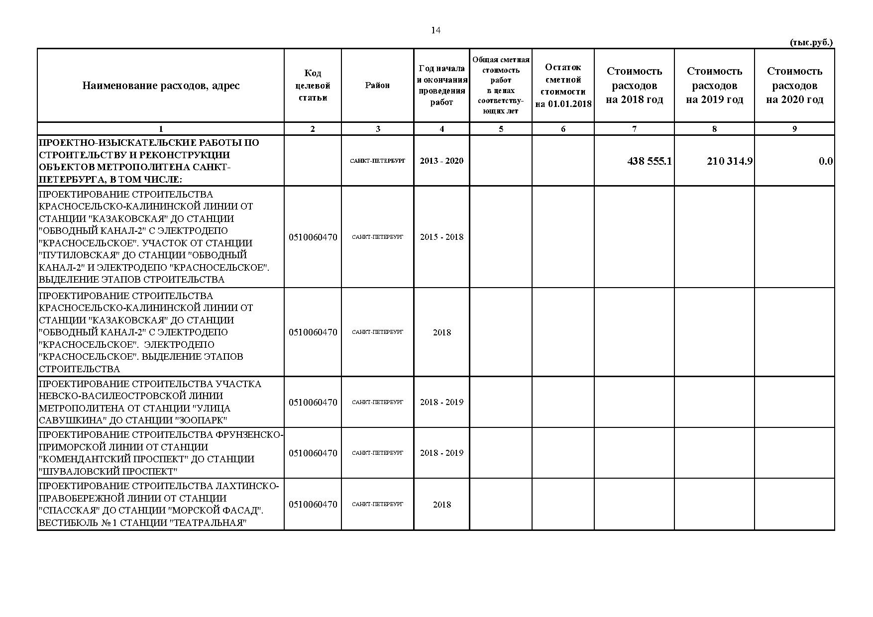 На проектно-изыскательские работы по объектам метрополитена в 2018 году запланировано 545,3 млн рублей. В частности, до конца первого квартала 2018 года из-за изменений строительных норм Смольный планирует провести конкурс на актуализацию проектной документации на станциях продолжения Невско-Василеостровской линии метро: "Улица Савушкина", "Зоопарк", "Комендантский проспект" и "Шуваловский проспект". В начале 2019 года эти работы должны быть завершены.