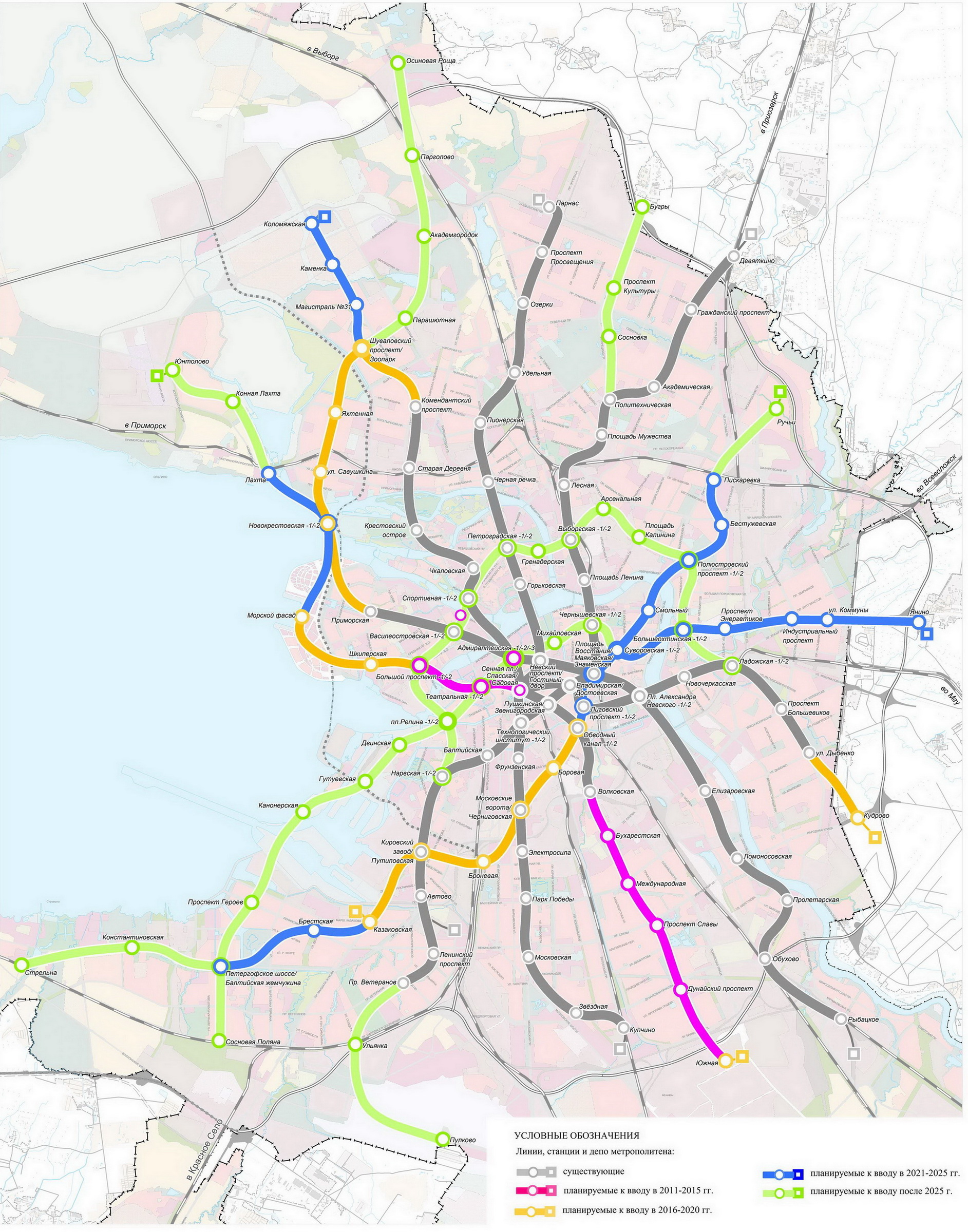 Во всех нормальных вариациях генплана проект развития метрополитена предполагал прохождение ЛПЛ через Приморскую. Предполагал вплоть до 2005 года, когда к Васильевскому спешно был прорисован полукруг Намыва. Настолько спешно, что Лахтинский радиус от неё [Приморской] оторвался и в Лахту вообще не попал. Года через три спохватились и всё же дотянули его до правого берега. Дотянули через Намыв, дотянули без пересадки на НВЛ. Ещё через три года миру явилась пара Новокрестовских…