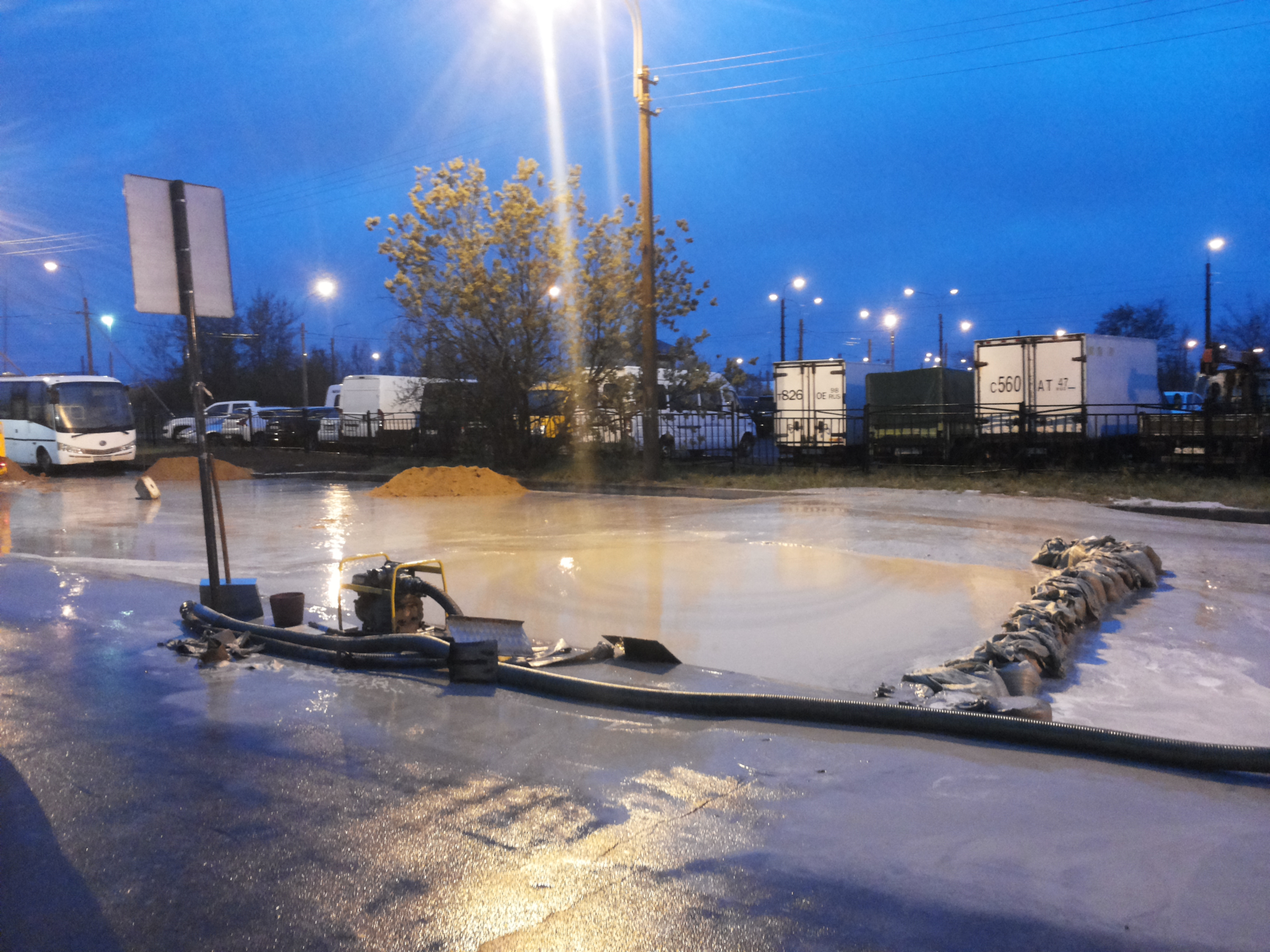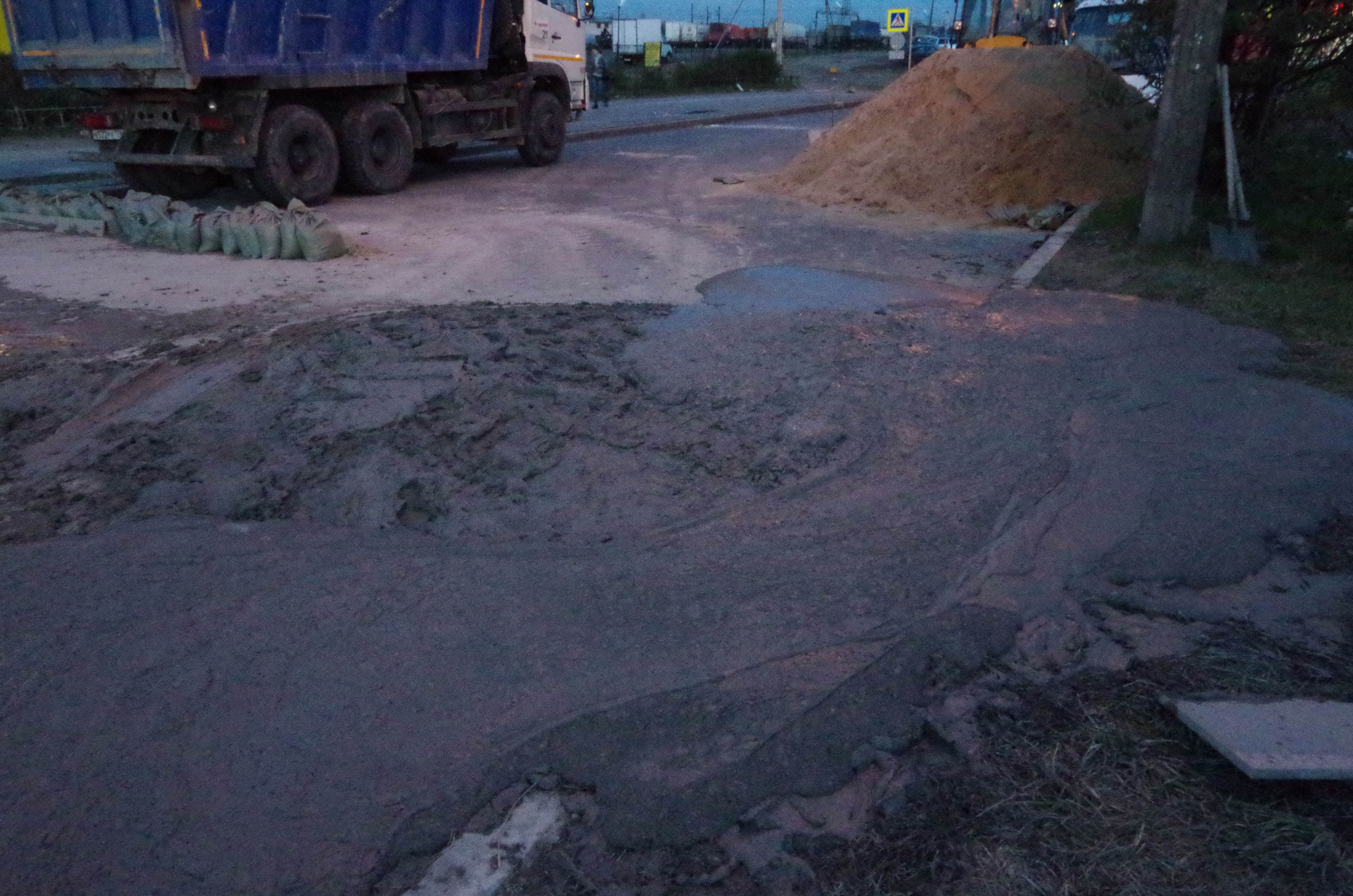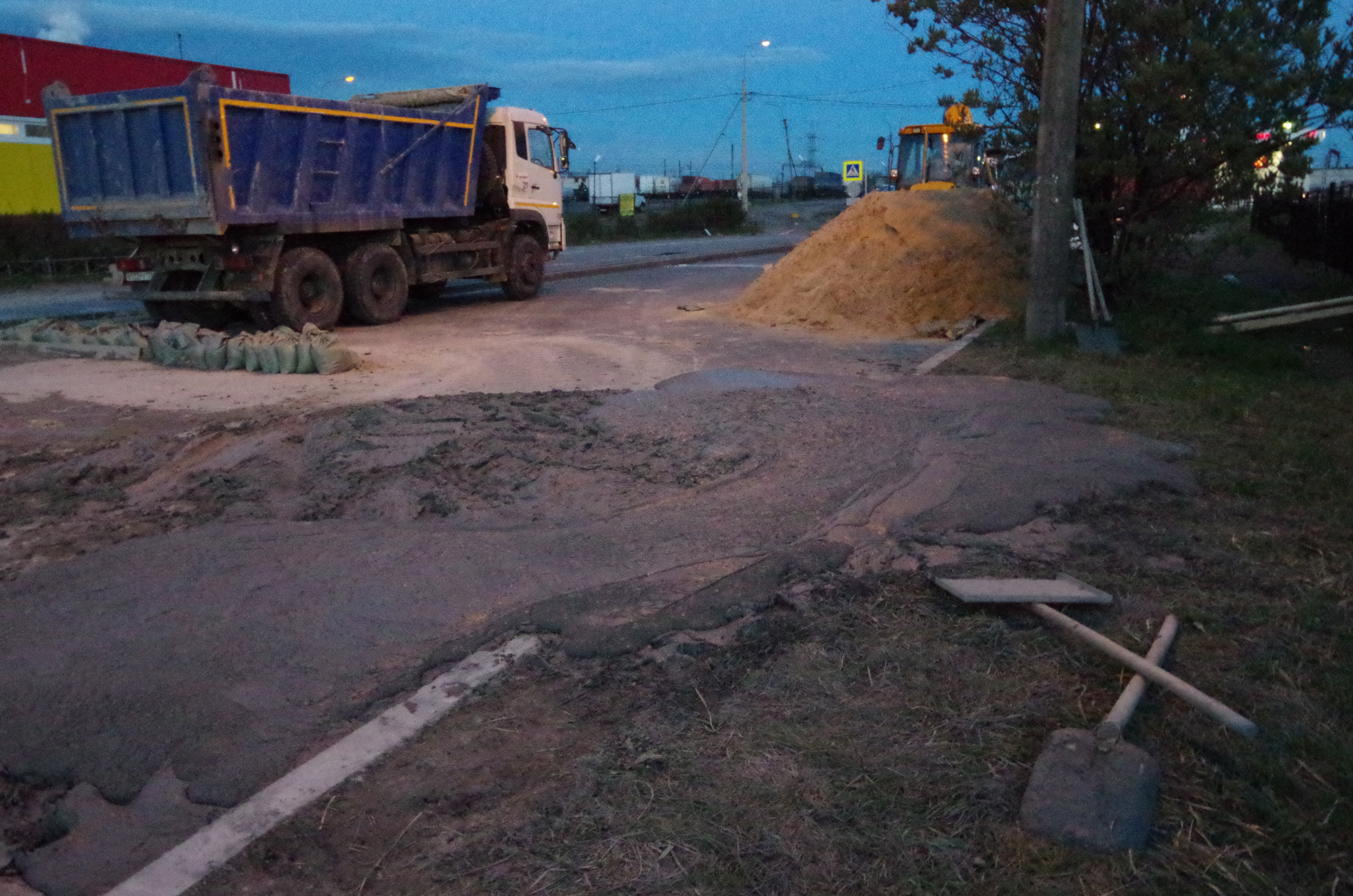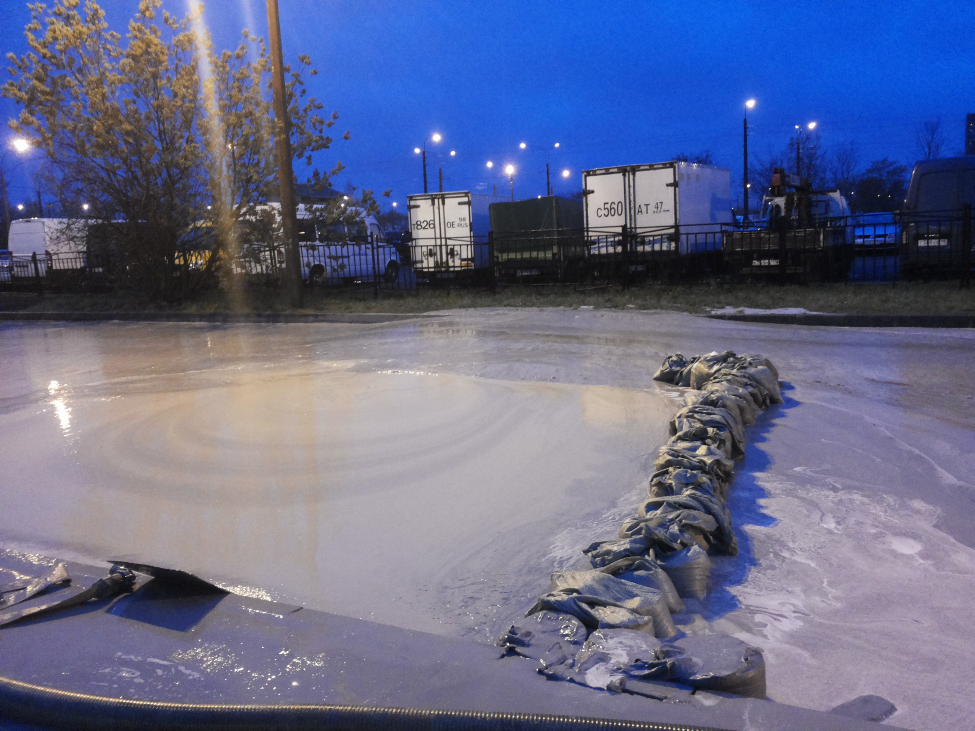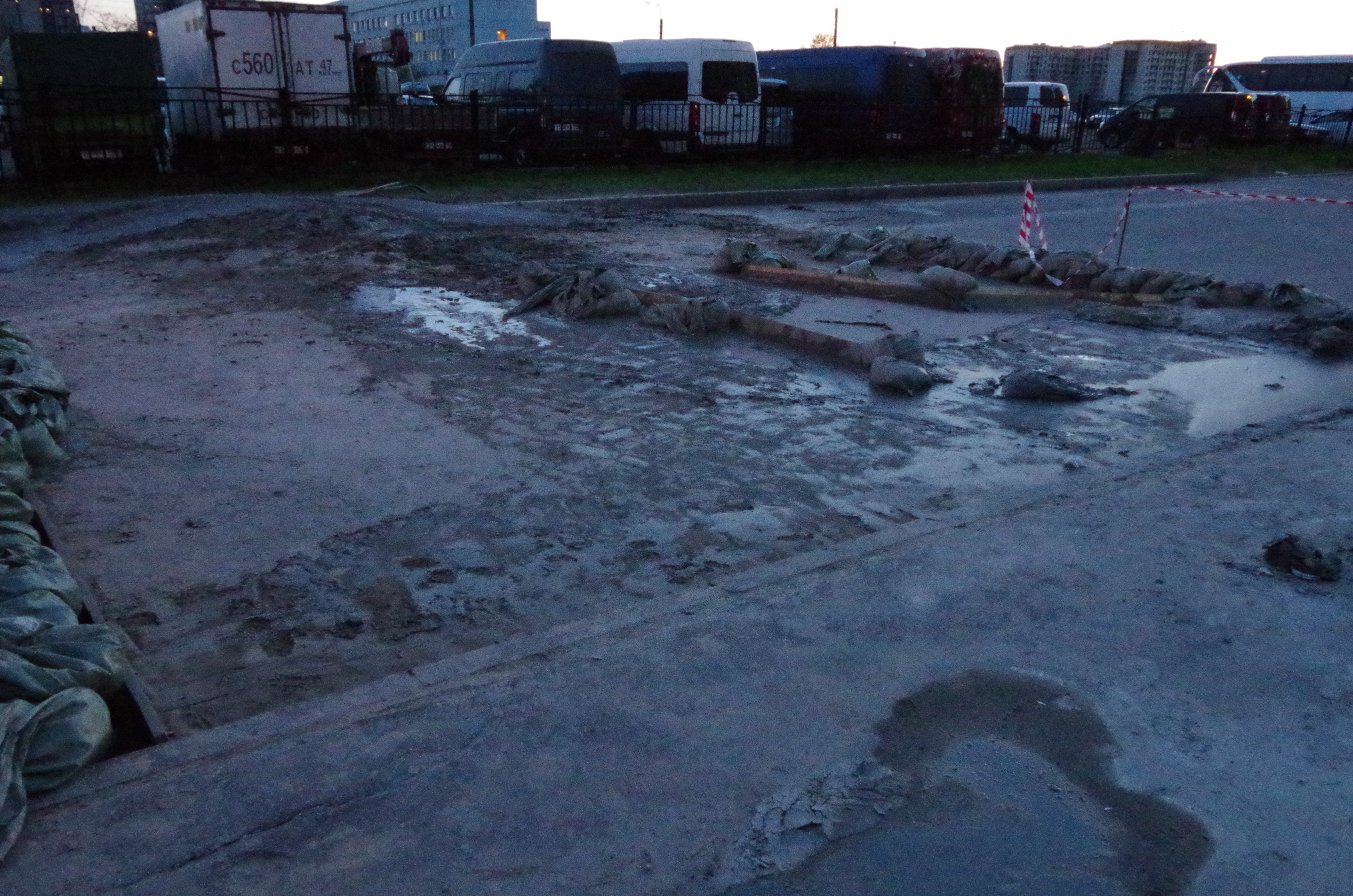 Свежие фотки с места происшествия. По Бухарестской не проехать, все объезжают за Пятёрочкой. Блямба, конечно здоровенная...