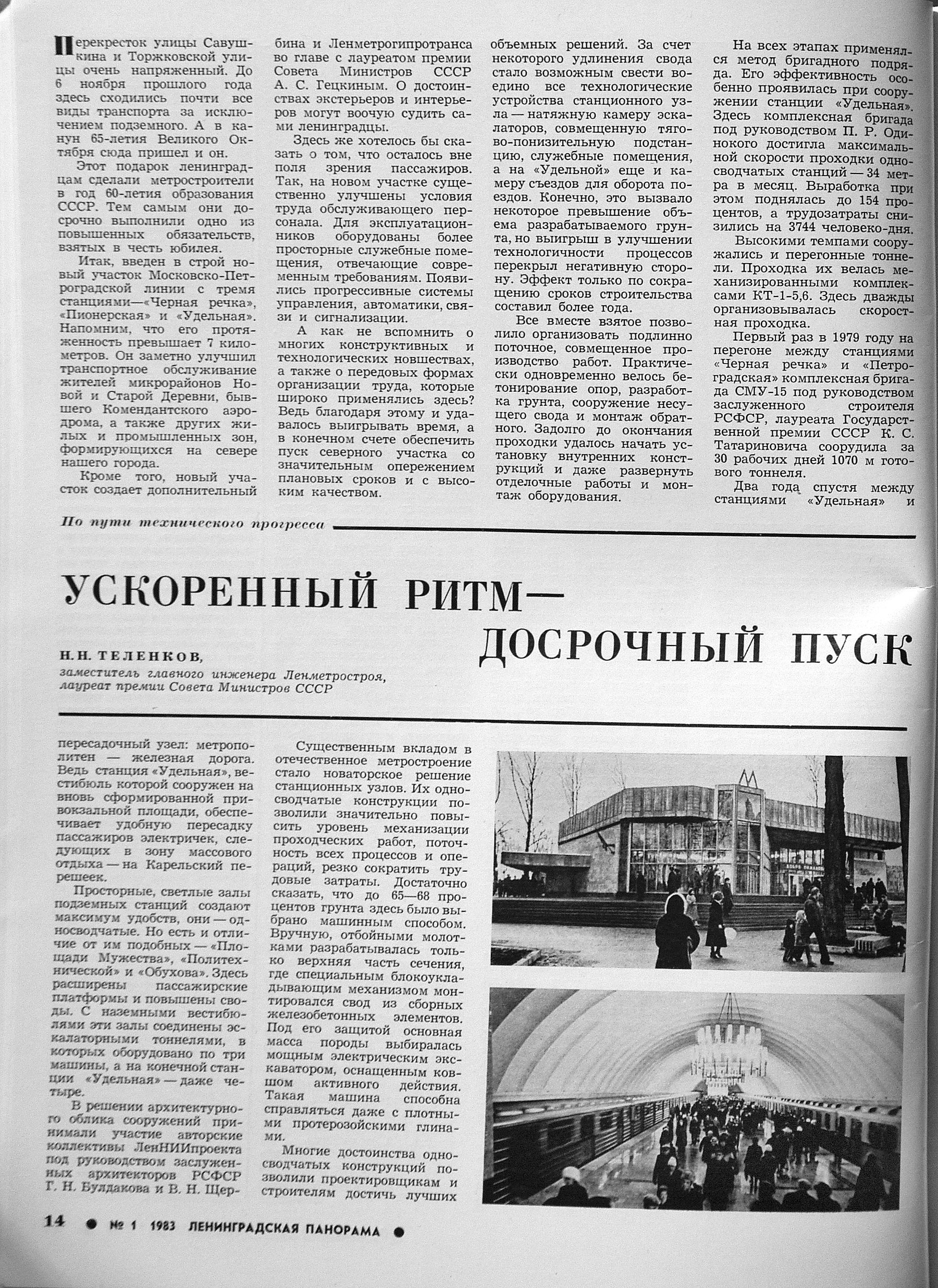 «Ускоренный ритм — досрочный пуск» («Ленинградская панорама», № 1, 1983)