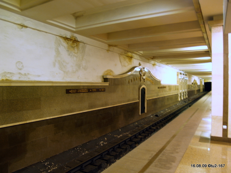 Особенно по сравнению с «Горками». Потолок и прочая красота прекрасно видны глазами, особенно в свете фотовспышек других пассажиров, но техника — да, уже капризничает.Станция «Суконная слобода» — в принципе самая заброшенная из всех.tu2-167 писал(а):На станции "Суконная слободка" совсем беда с путевой стеной.