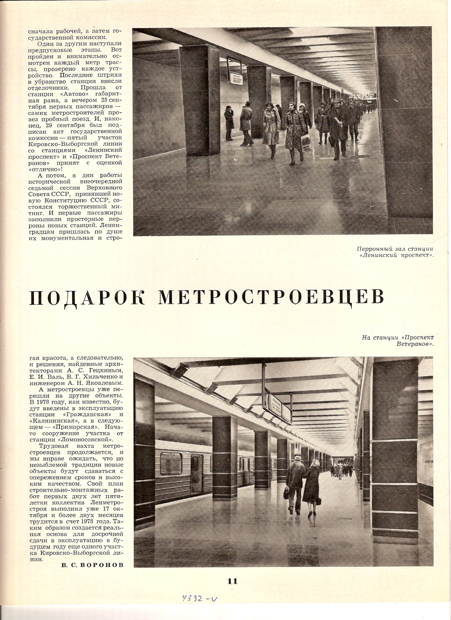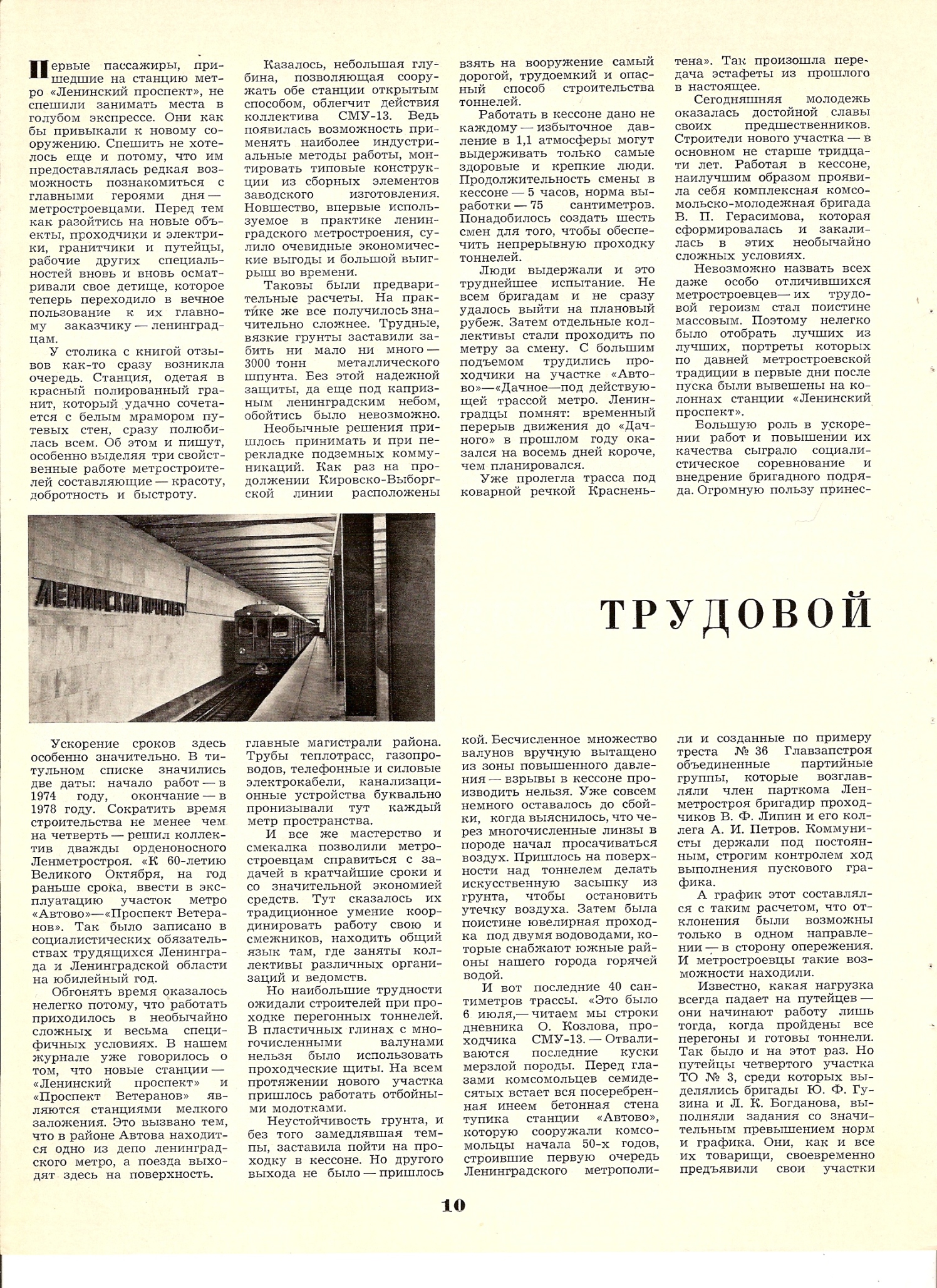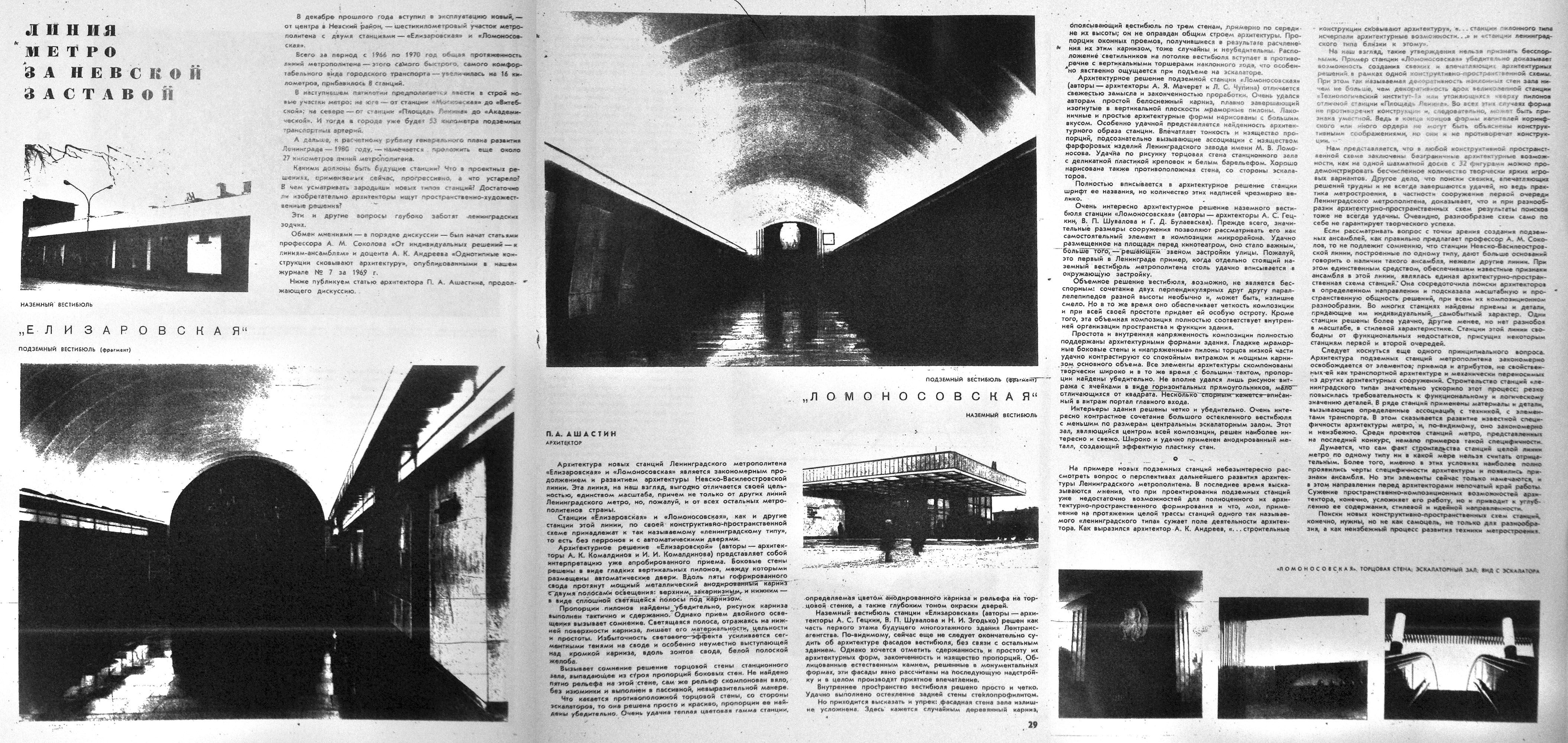 Статья из "Строительства и архитектуры Ленинграда" о строительстве и открытии участка "Автово" - "Проспект Ветеранов". Интересны подробности о проблемах при строительстве станций мелкого заложения (не на много это дешевле и быстрее глубокого заложения). Также указано, что участок "Автово" - "Дачное" закрывался на некоторое время при проведении работ (где-то кого-то когда-то этот момент интересовал).