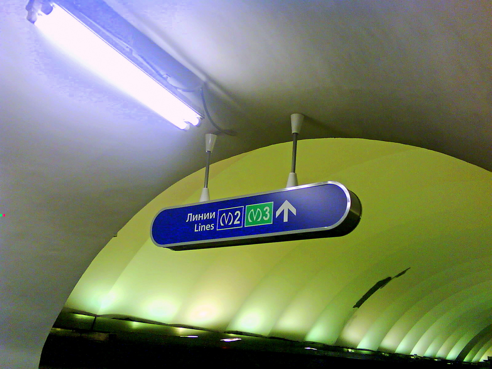 Ещё б в центре исправили, возле лестничного спуска на «Невский». А то переход сразу уходит вниз, а стрелка указывает вверх, то есть: «Линия М2 — вперёд, дальше».