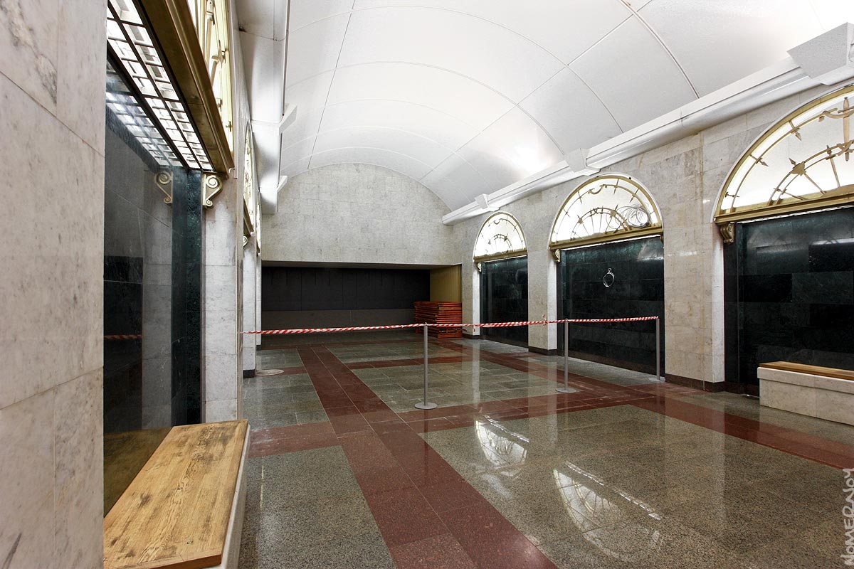 Вестибюль станции: идет подготовка к установке турникетов и огромное количество других работ, все как в муравейнике :) Сфотографировать пытался, чтобы попало в кадр меньше рабочих..