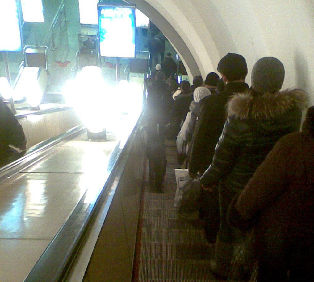В верхнем вестибюле Нарвской нередко устраивает себе тихий час стая бездомных собак. Часто поперек пассажиропотока, так что комментарий kot'а подходит и для этого случая)