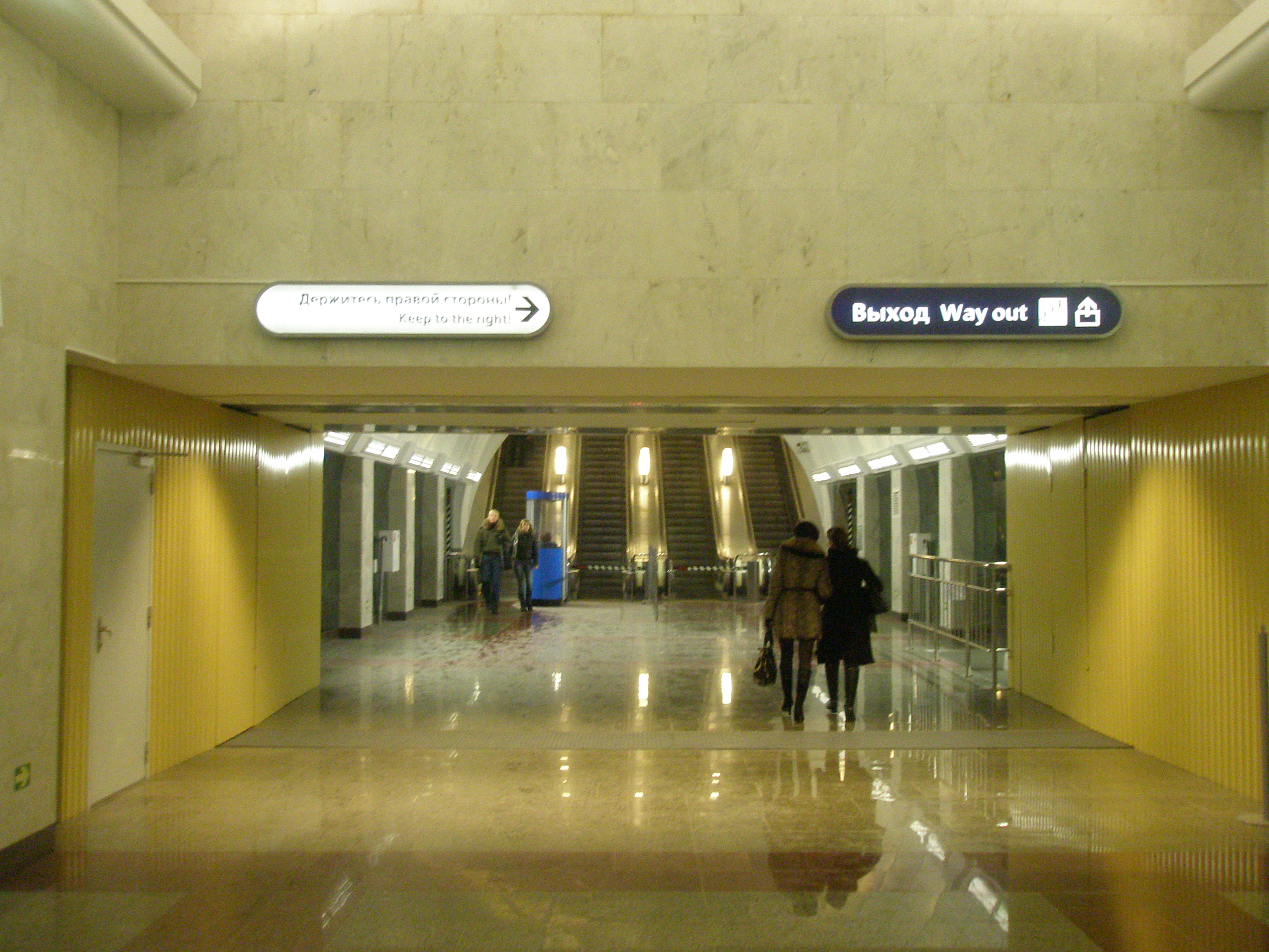 - Опять таки: ПОЛЫ СКОЛЬЗКИЕ! :) Причина, скорее всего, даже не в гладкости самих полов, хотя об этом могли бы, и позаботиться, а в недостаточности количества решёток на входе. (Copy-Past с Горьковской )