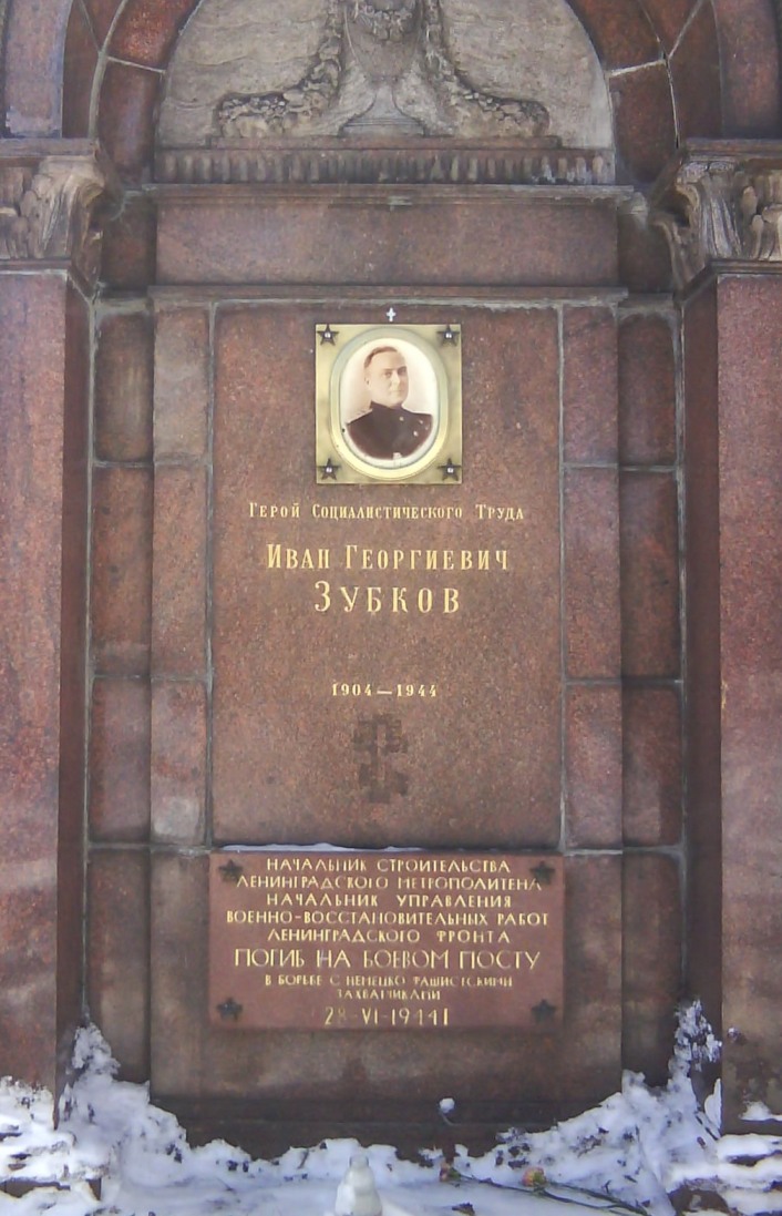 Памятник на могиле И.Г. Зубкова, первого руководителя строительства Ленинградского метрополитена. Александро-Невская лавра, Коммунистическая площадка (Внутреннее кладбище).