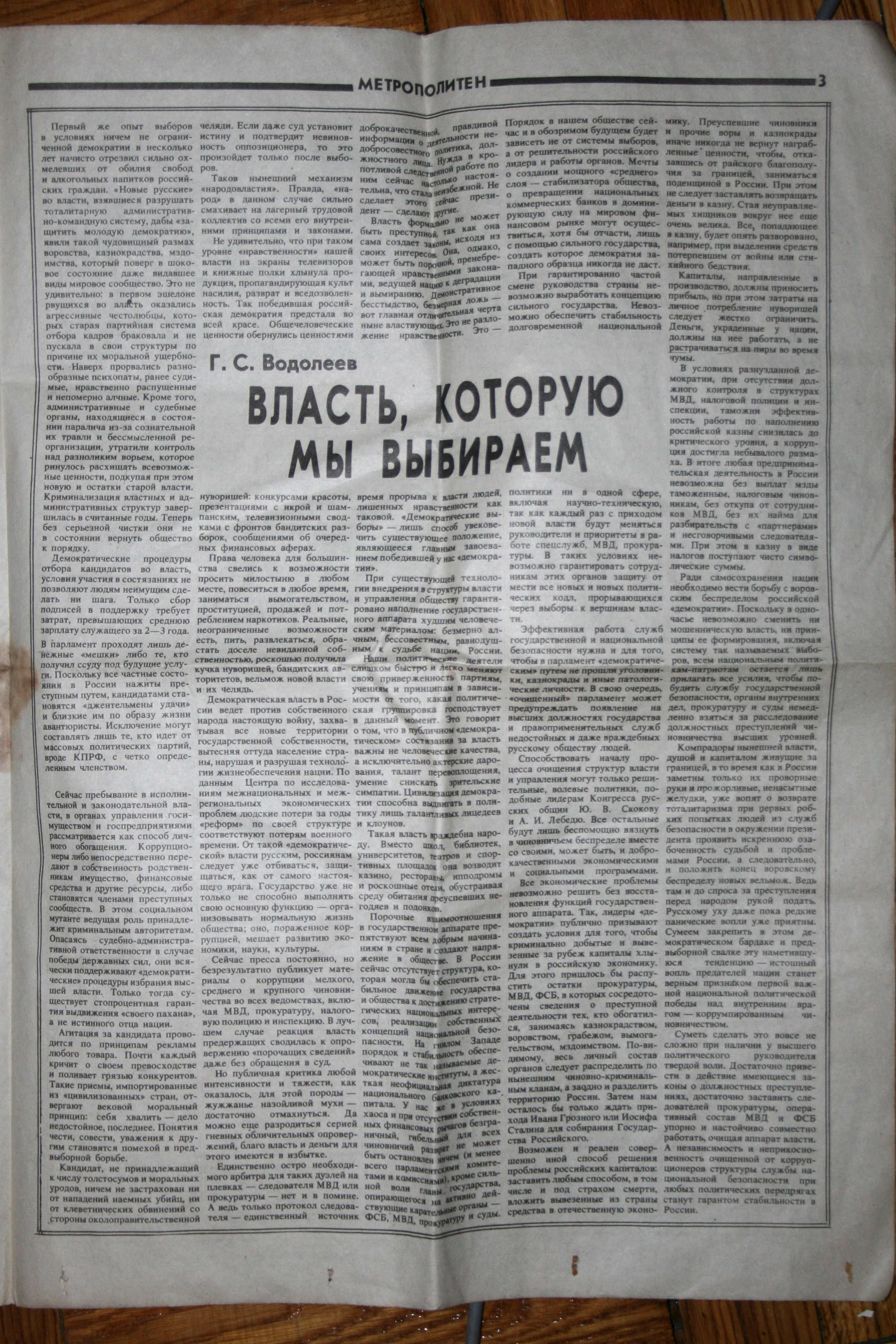 Газета "Метрополитен (Санкт-Петербурга)" от 7 декабря 1995 г