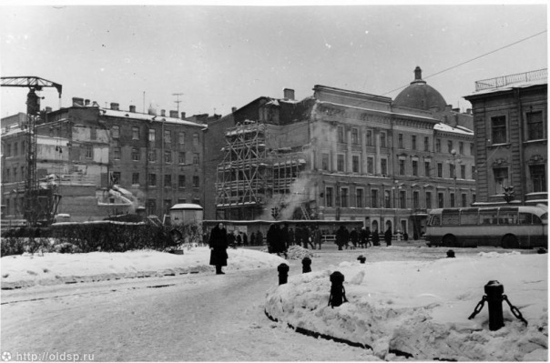 А вот фотка строительства этого вестибюля. Наконец я увидел ответ на мой старый вопрос, целиком дом сносили, или только часть. Стырено отсюда http://oldsp.ru/photo/view/3746