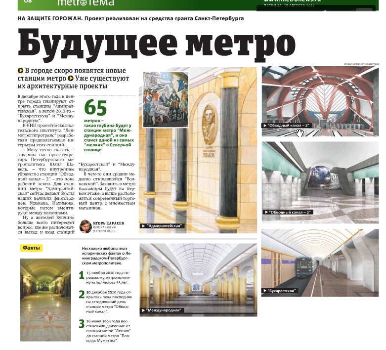Небольшая статья про архитектуру новых станций ПМ. Газета "Метро" от 19/08/11