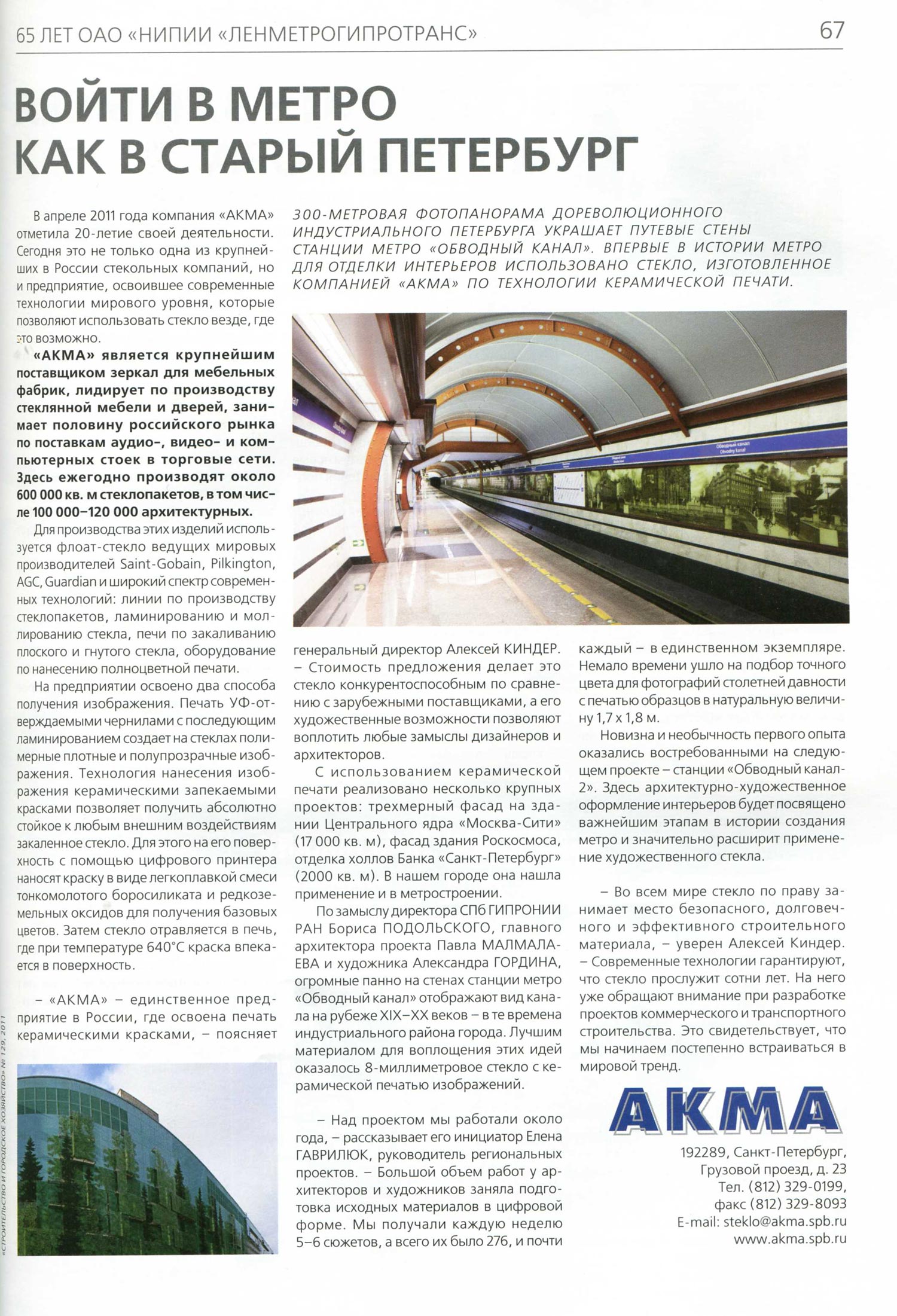 Темы номера - конкурсы на строительство метро и 65-летие НИПИИ "Ленметрогипротранс"