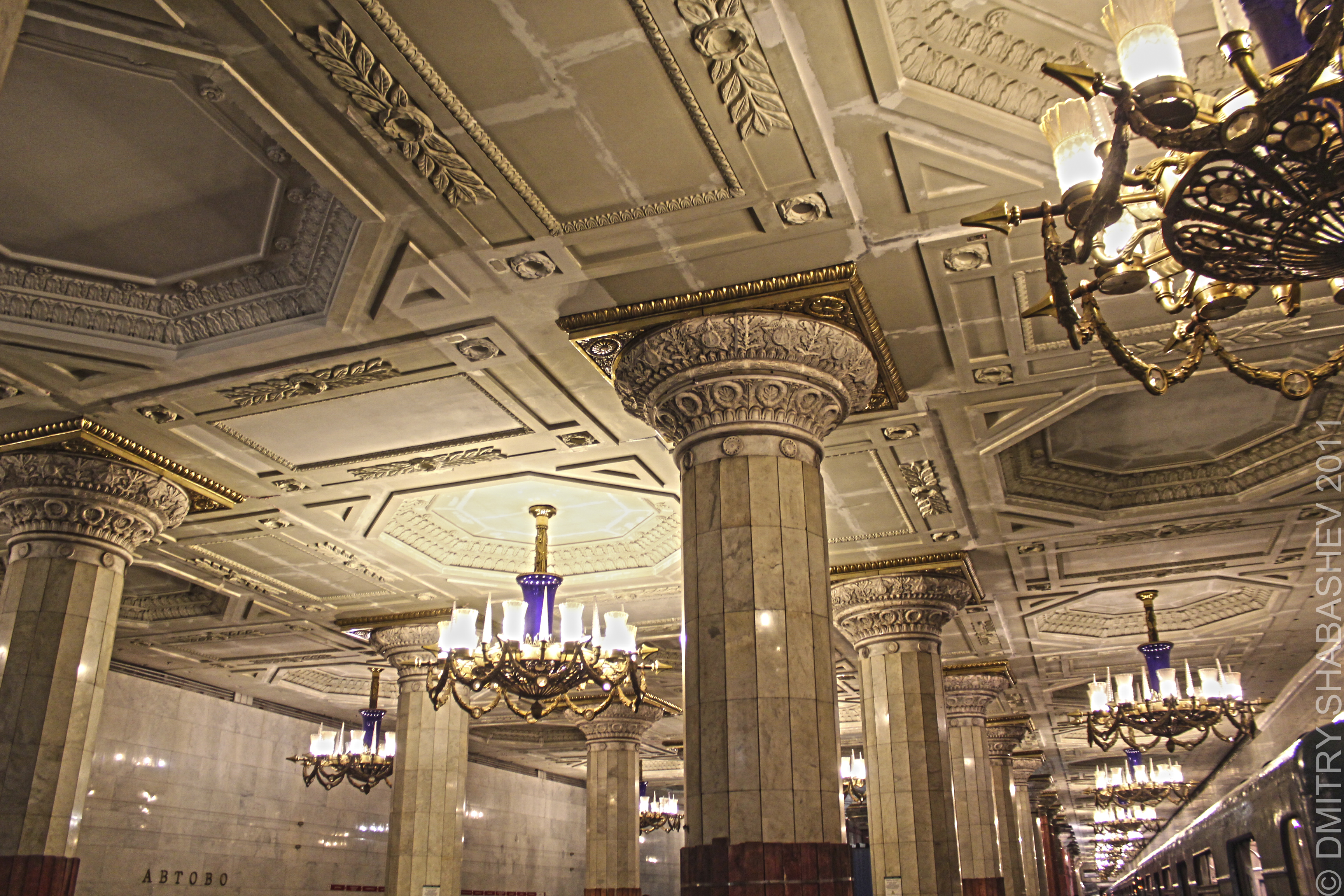 А вот софиты для подсветки панно - не айс. Выходишь из первого вагона - и получаешь ярким светом по глазам. Но мечтать о возврате люстры уже не приходится, судя по всему...