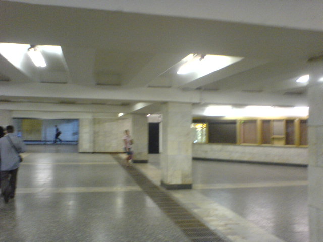 А вот в подземном вестибюле, похоже, начинаются работы по ремонту подвесного потолка. Следует отметить, что эти работы начались ни с "пустого места", так как потолок, находящийся над эскалаторами, страдает от протечек.