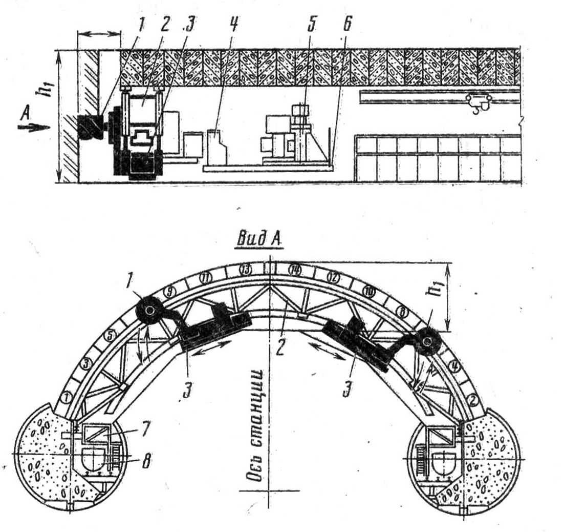 С помощью арки, предназначенной для монтажа колец верхнего свода односводчатых станций.