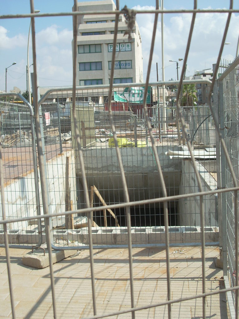 Вчера с риском для жизни и для кошелька перешёл улицу вне зоны перехода и посмотрел, что же там такое строится. Там - ещё один спуск в подземный переход и на станцию. Очень странно. Зачем спуск прямо посреди улицы на разделительной полосе? В Питере такие выходы бывают к трамвайным остановкам, но зачем в Израиле?
