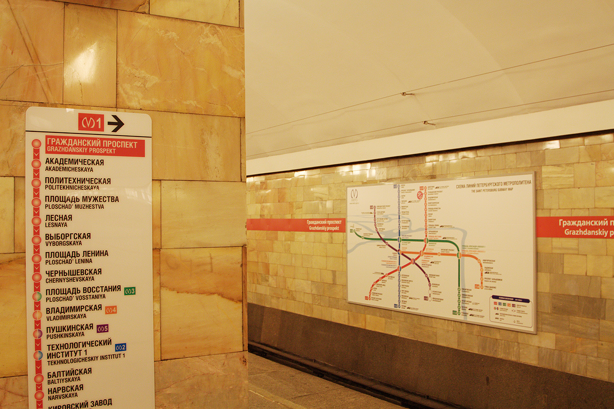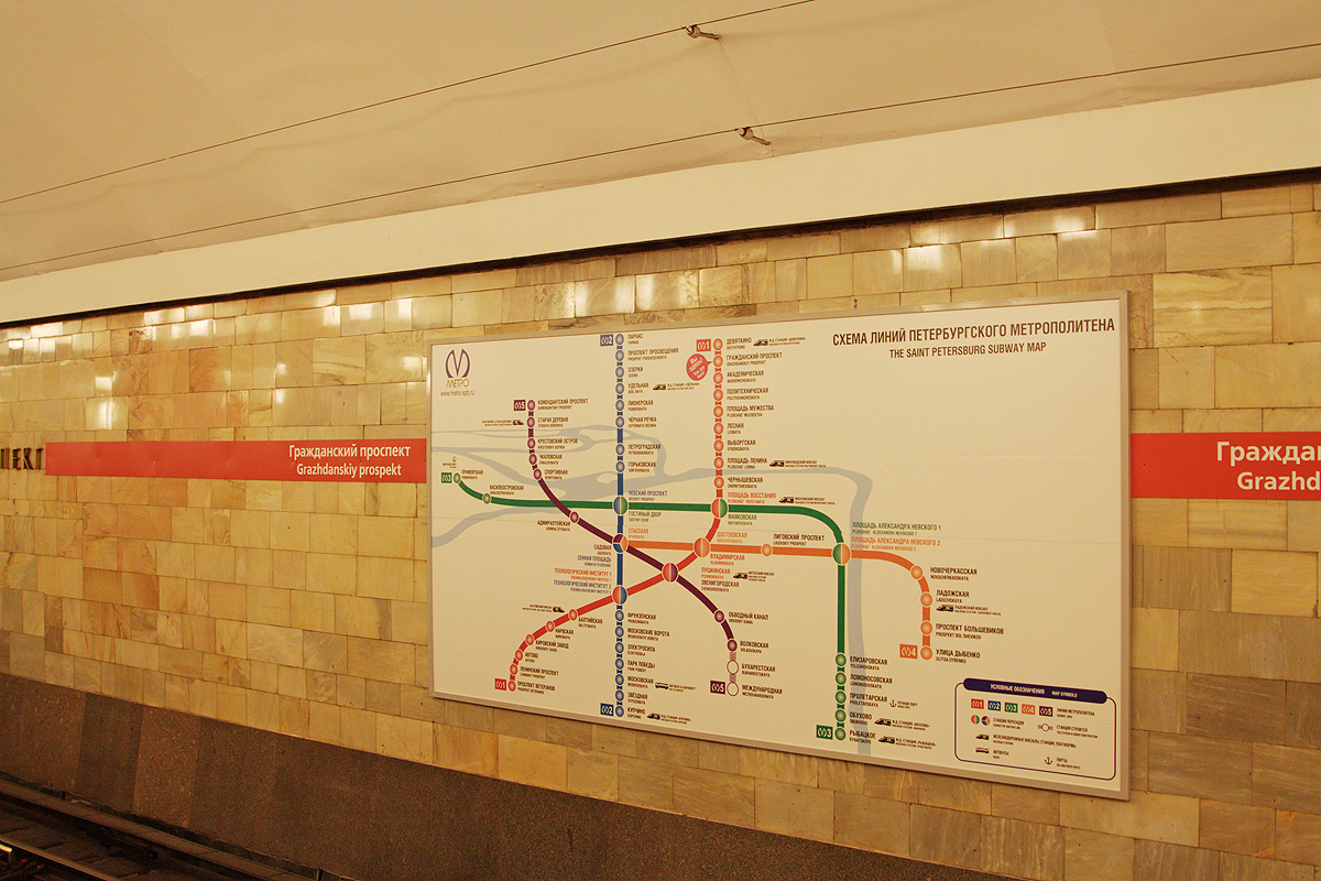 Мы много раз ругали НИП за то, что с путевой линии исчезли таблицы со списками станций других линий, лично у меня СИПовский вариант тоже вызывал большие сомнения, в некоторый период времени мне приходилось ездить со своего «Проспекта Просвещения» на станцию «Чернышевская» и я ловил себя на мысли, что следуя данному указателю я должен пересаживаться на Техноложке, хотя связка «Гостиный двор» — «Маяковская» была для меня несравненно удобнее.