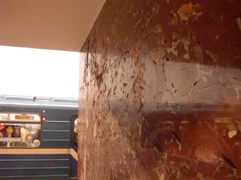 AlexPiterForever писал(а):В подземном зале станции, на стене платформы в сторону ст. "Купчино", которая была ранее зашпаклевана (см. фото на этой странице), появилось очередное "чудо художественной мысли" ("под цвет мрамора").