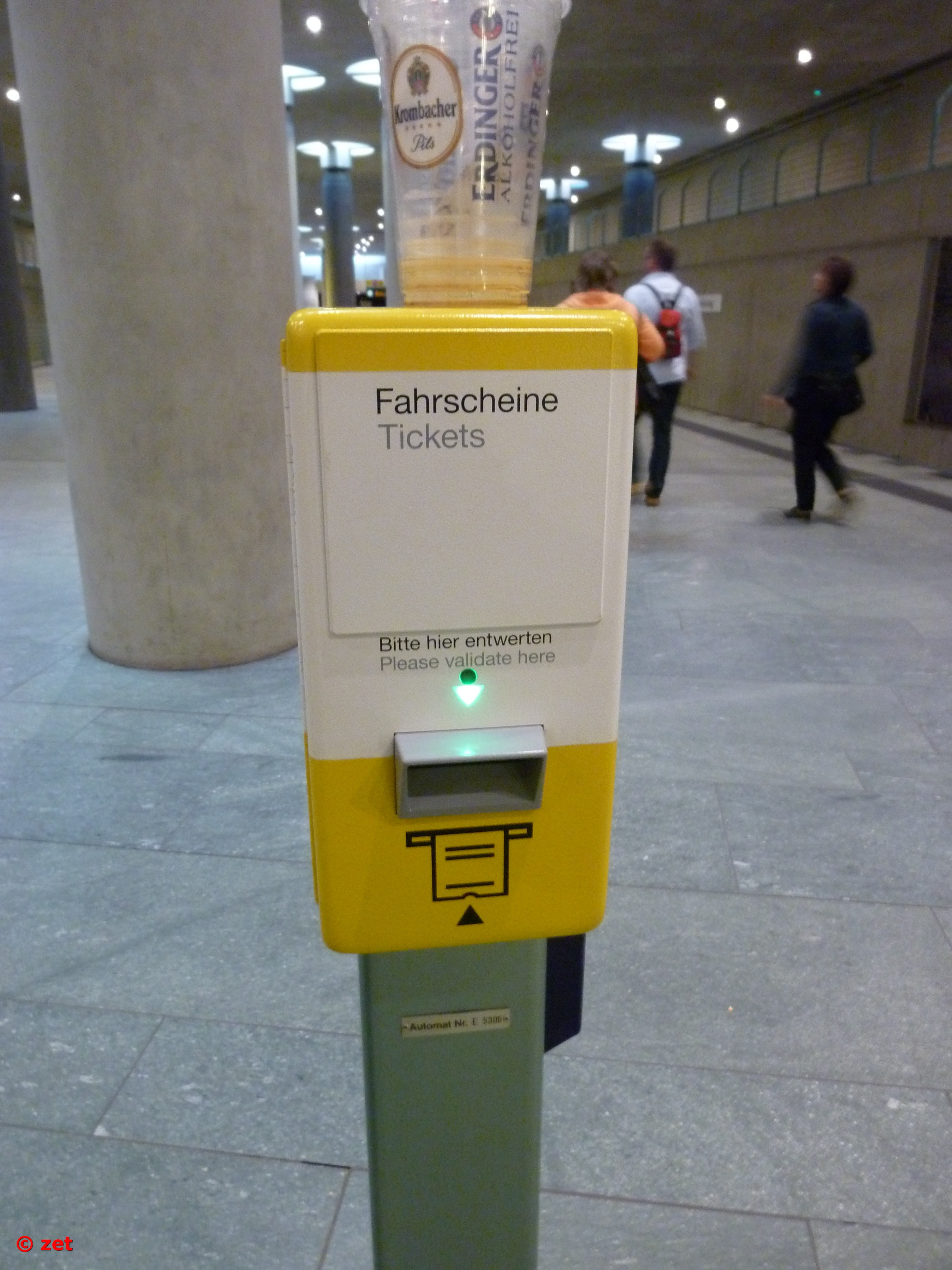 Валидатор проездных билетов на платформе станции метро Bundestag (U55)