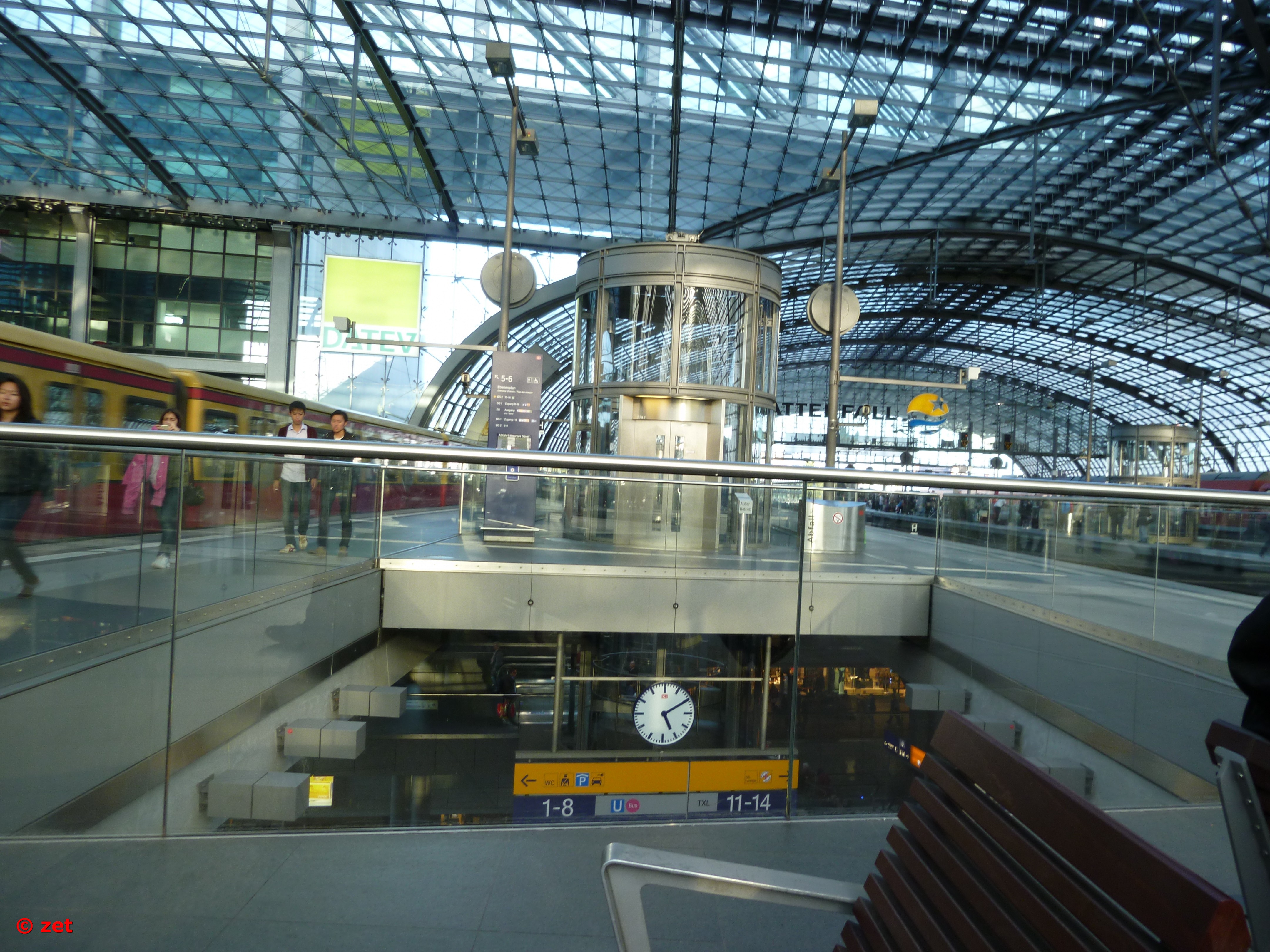 На платформе вокзала Berlin Hauptbahnhof. Лифт для передвижения между уровнями