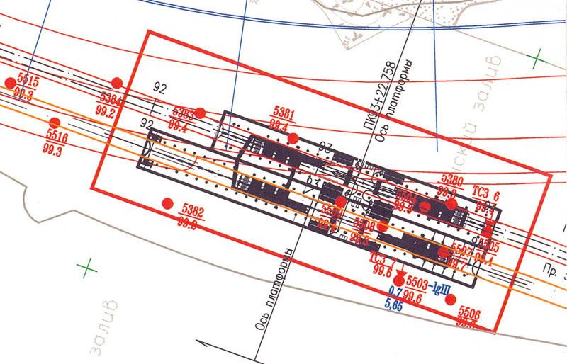 Станция будет расположена почти по оси Север-Юг. Сейчас мы предполагаем, что на чертеже вид "от стадиона", то есть в левую сторону направление на "Василеостровкую" (Юг), а в правую на "Савушкина" (Север). Но может и ошибаемся, и на чертеже вид "от залива" и тогда его надо развернуть на 180°. Направления движения соответственно поменяются и расположение эскалаторов тоже