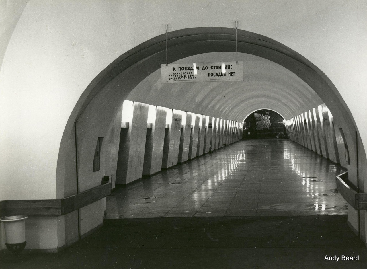 Выборгская: торцевую стенку перенесли довольно скоро после окончания строительства, лет десять стена была раскрашена под мрамор, впоследствии облицована мрамором.