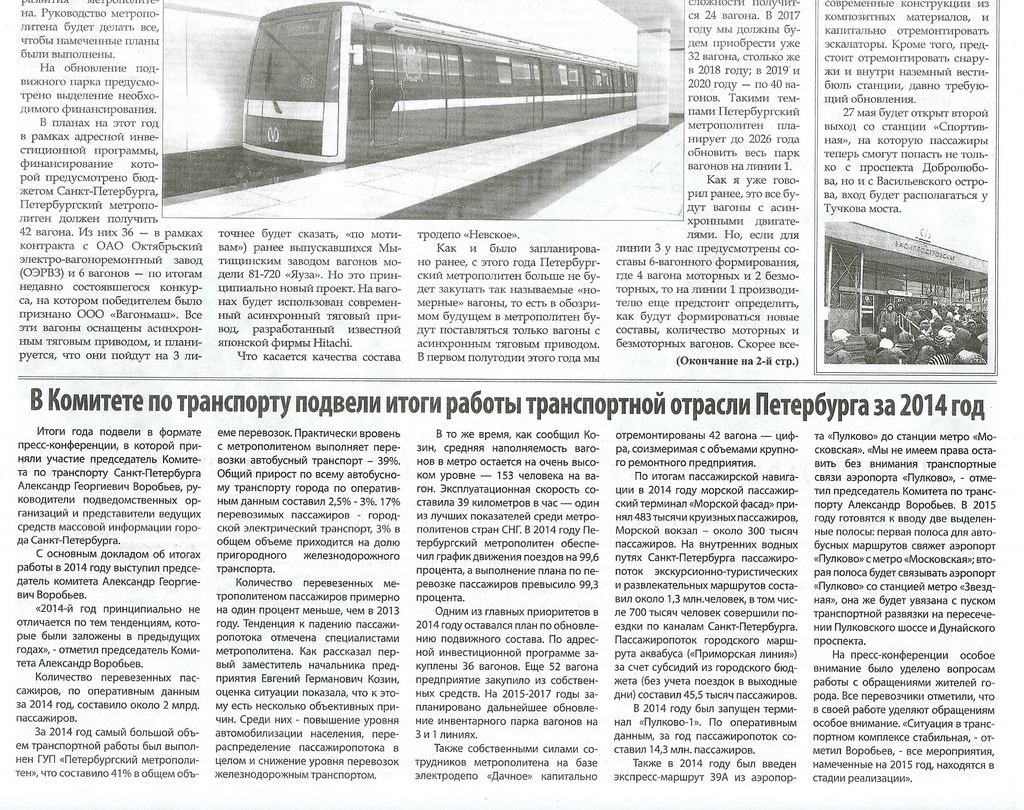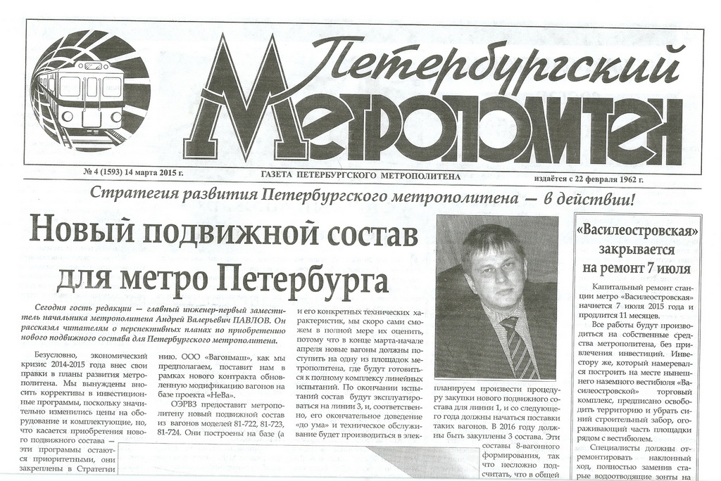 В планах на этот год в рамках адресной инвестиционной программы, финансирование которой предусмотрено бюджетом Санкт-Петербурга, Петербургский метрополитен должен получить 42 вагона. Из них 36 – в рамках контракта с ОАО Октябрьский электровагоноремонтный завод (ОЭВРЗ) и 6 вагонов – по итогам недавно состоявшегося конкурса, на котором победителем было признано ООО «Вагонмаш».
