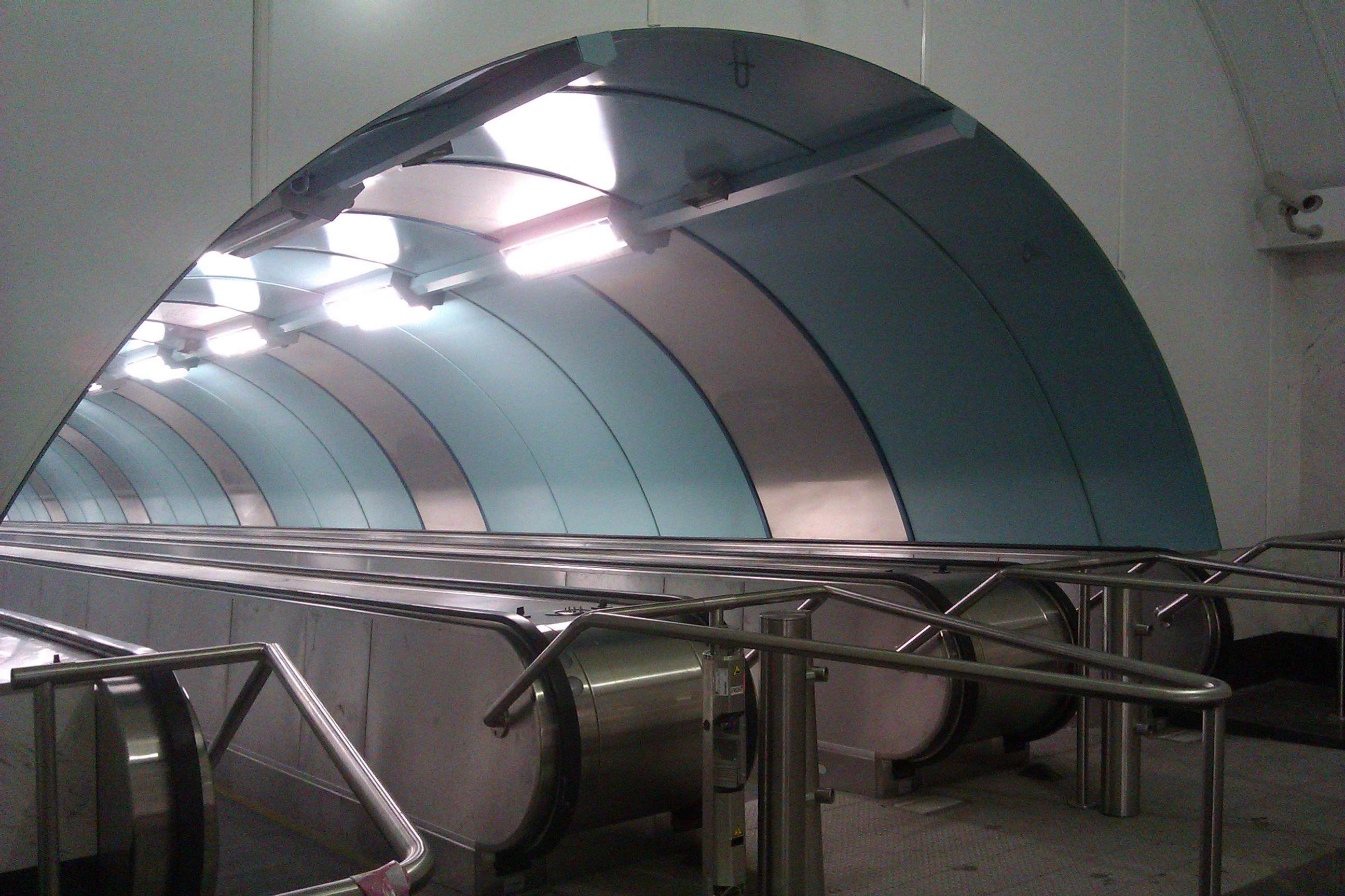 И, пользуясь случаем, посылаю -1 в карму проектировщикам, добавившим полтора десятка ступеней между уровнем пола станции и началом травелаторов. Теперь эта красота видна во всей красе.