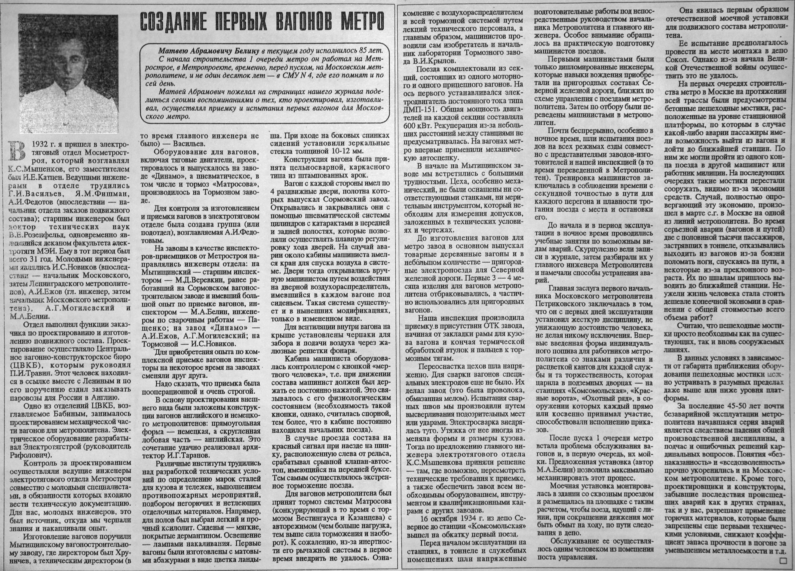 Подборка о разработке вагона типа «А» из журнала «Метрострой»/«Советский метрополитен».