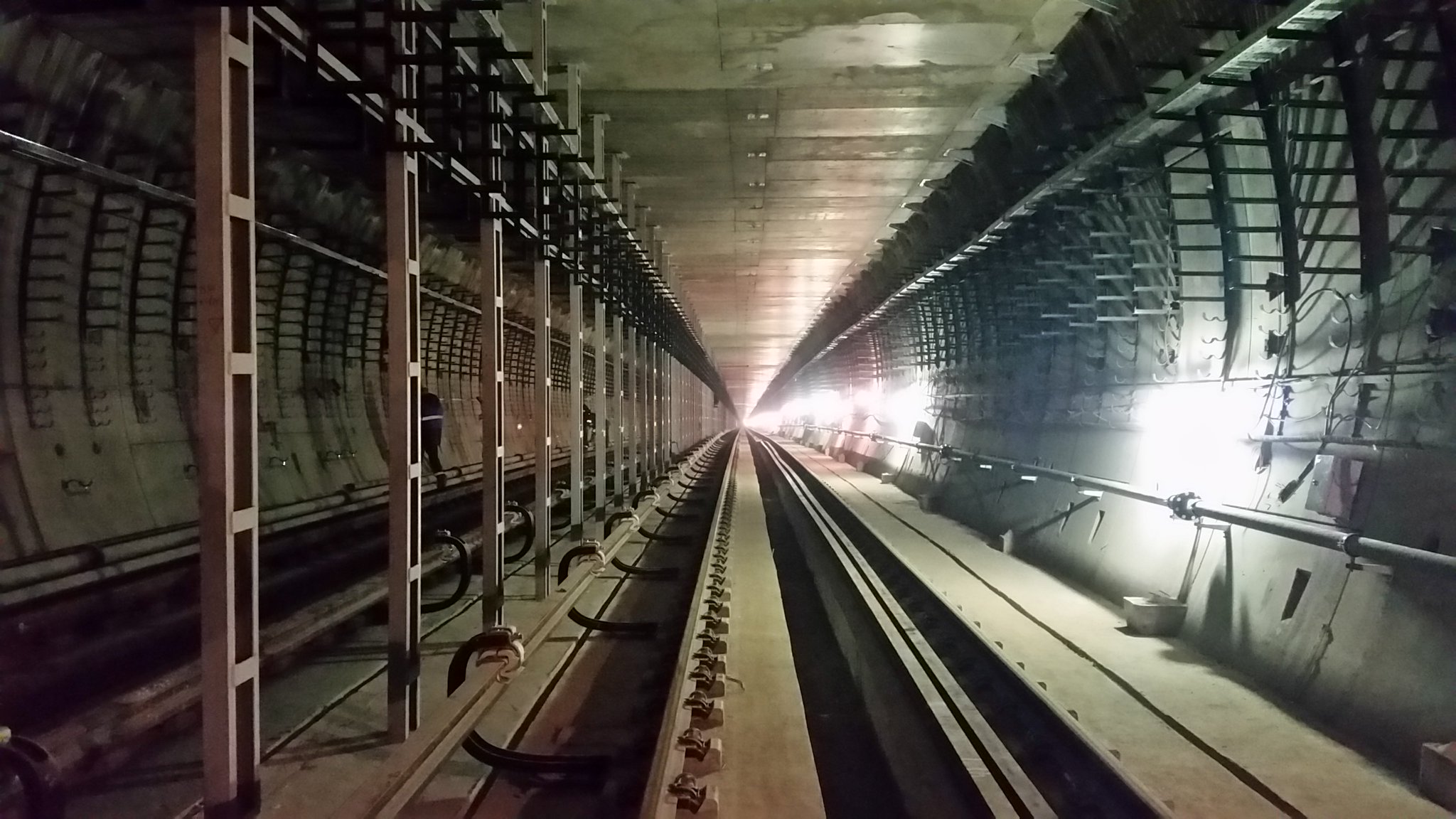Узел примыкания 625 шахты к перегонному тоннелю, вид из вентиляционной части тоннеля. 2017.10.01.