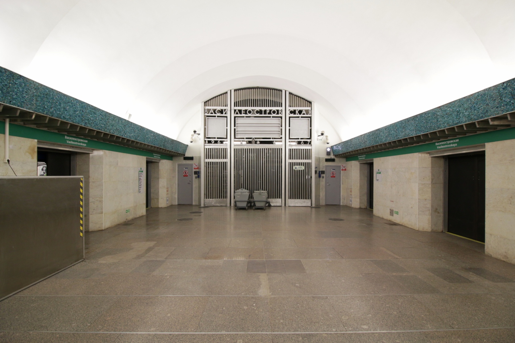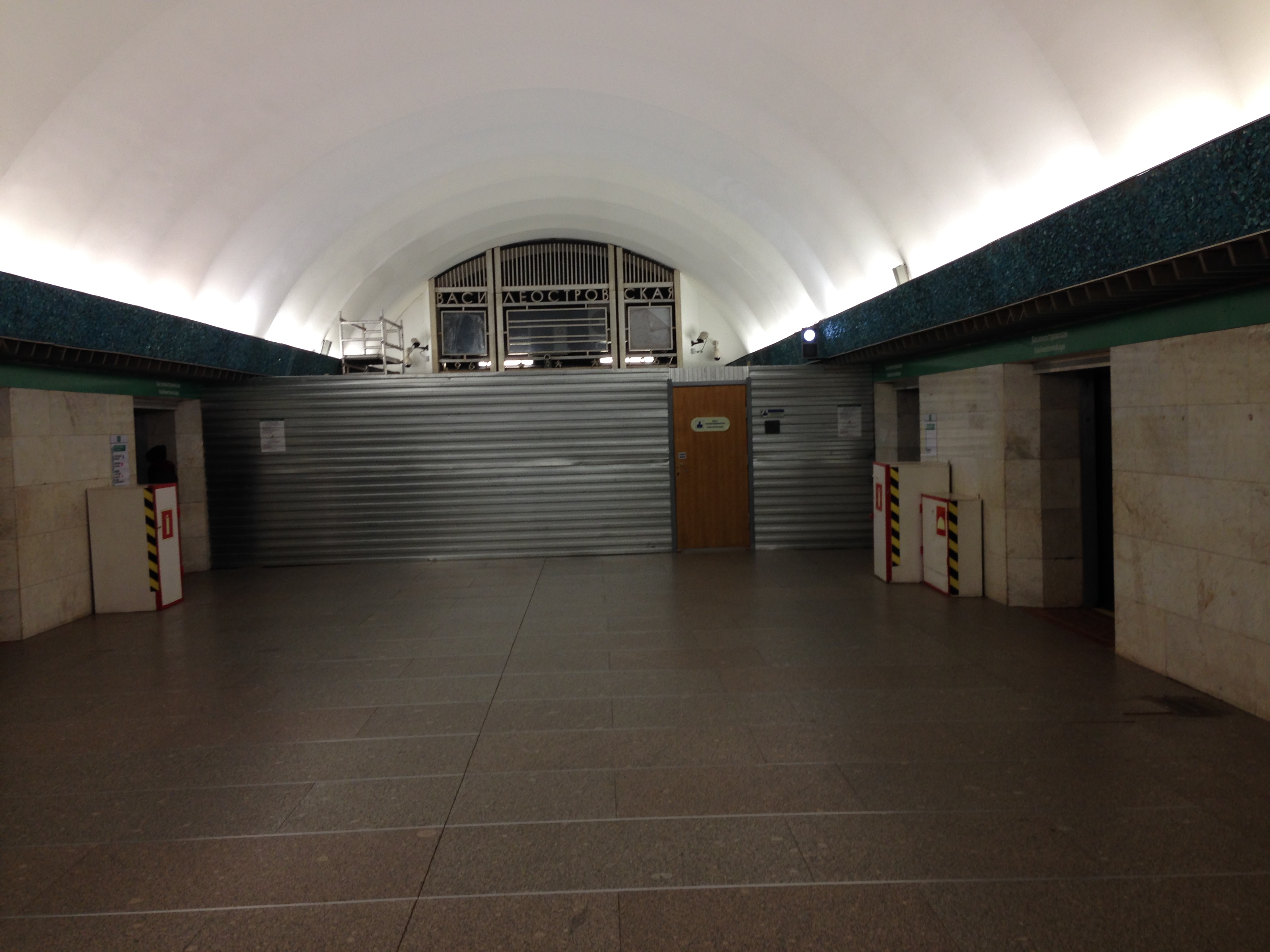 Сейчас ведутся работы по перемещению решетки. На протяжении многих лет за нею находилось находилось технологическое оборудование для обслуживания станции. Оно сокращало длину перрона, и более того, не давало пассажирам выйти из двух дверей первого вагона в сторону «Приморской» и двух дверей последнего вагона в сторону «Гостиного двора». Как утверждает Петербургский метрополитен, так было изначально. Однако современные технологии позволили избавиться от объемного оборудования, и в ближайшее время на «Василеостровской» будут открываться все двери.