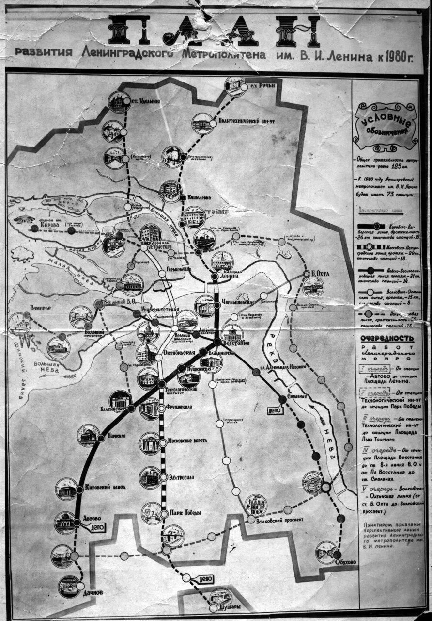 Сейчас о них вспоминают крайне редко, в основном, на лекциях, посвященных Петербургу. Или не вспоминают вовсе. Например, вряд ли абсолютному большинству пассажиров известно о том, что между «Гостиным двором» и нынешней «Маяковской» планировали открыть станцию «Литейный проспект», а следующей после «Адмиралтейской» должна была стать «Университетская». Или вот еще интересный факт: изначально планировалось, что с «Площади Ленина» подземный поезд поедет на «Площадь Льва Толстого» (сегодня это станция «Петроградская»).