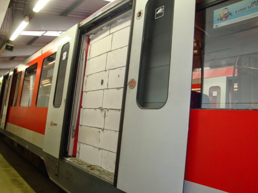 В Гамбурге неизвестные шутники заложили вход в вагон метро кирпичами. Причем поезд проехал 10 станций, прежде чем сотрудники метрополитена заметили это. Неизвестные не поленились принести в подземку кирпичи, сложили из них стену и скрепили её монтажной пеной.