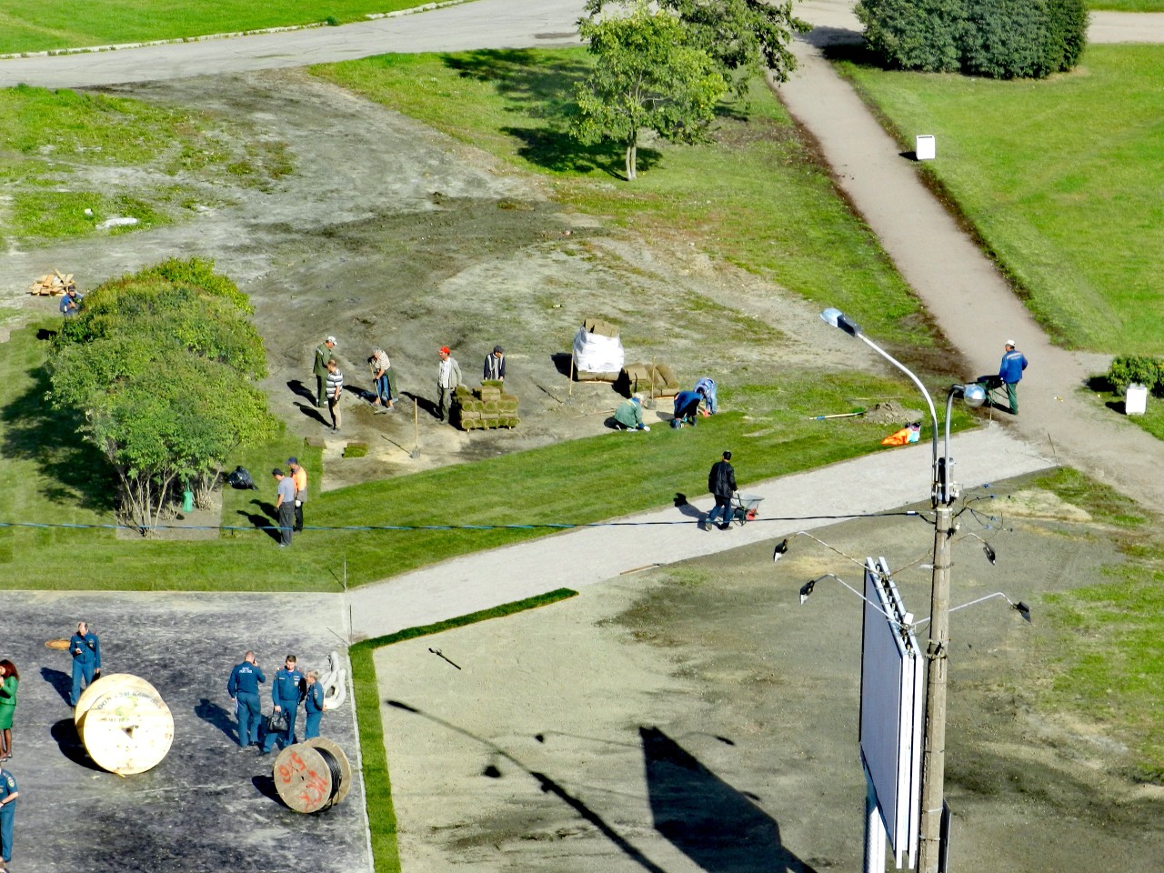 Проскакивали фото, которые ясно говорят о том, что на месте пока не выросшего газона на месте стройплощадок экстренно укладывают искусственный рулонный газон.