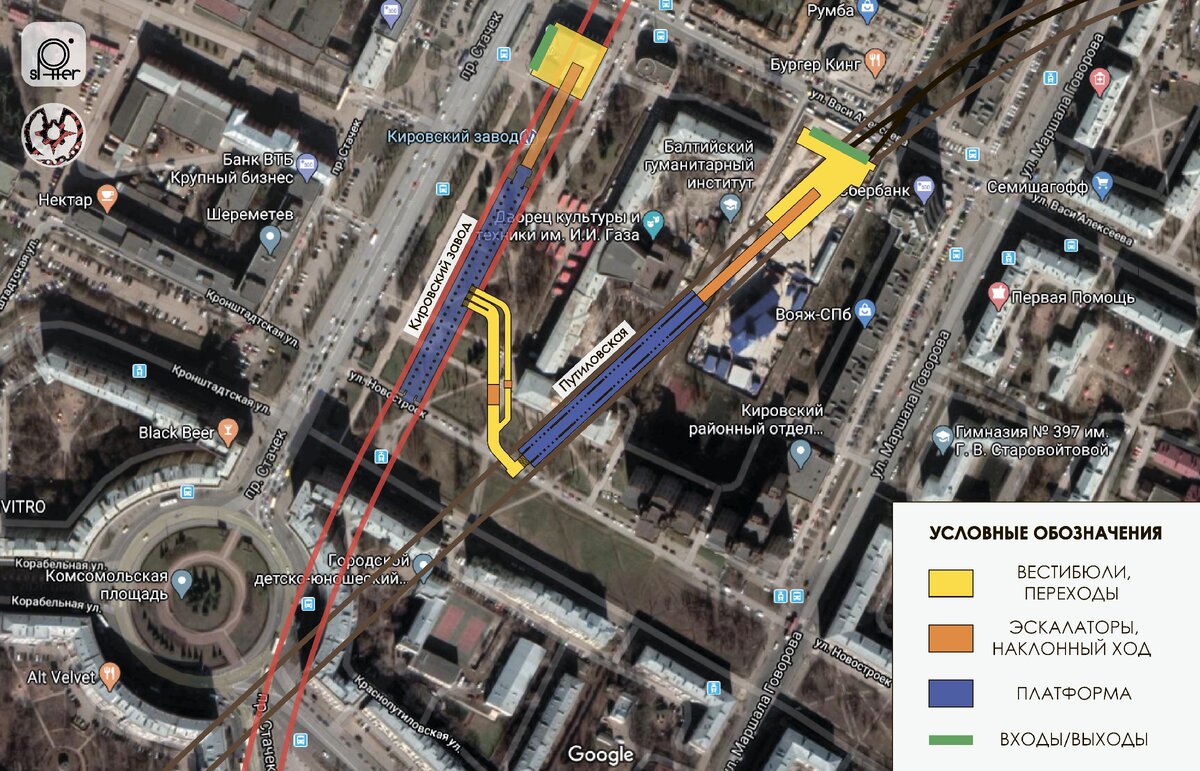 Чтобы избежать этого, нужно было делать дополнительным рабочим стволом старую шахту №5, через которую выполнять и усиление перегонных тоннелей, и строить часть пересадки, примыкающей к "Кировскому заводу".