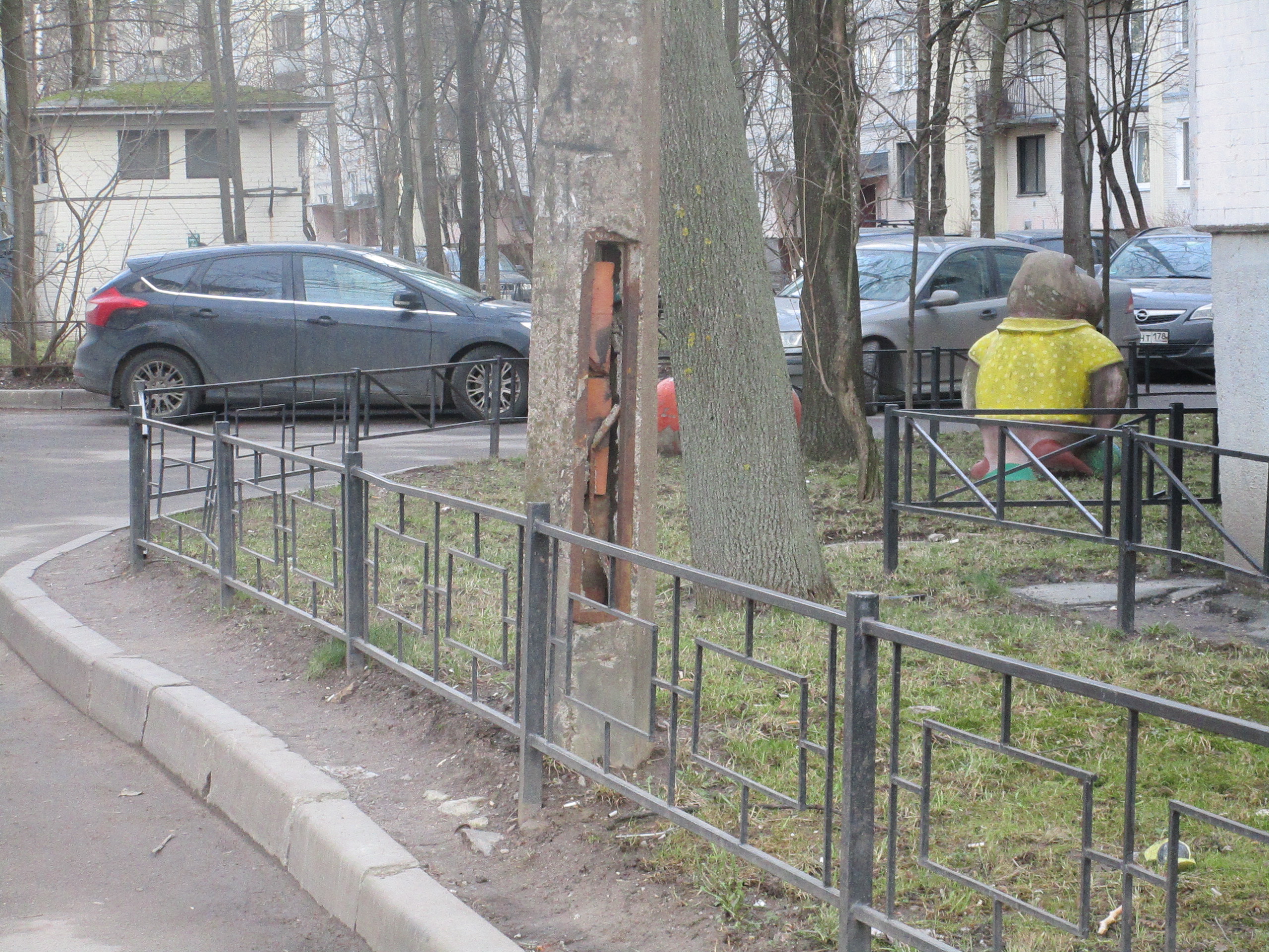 Остатки советской стрелы между детской поликлиникой 29 и домом Просвещения пр.53 корп.3: