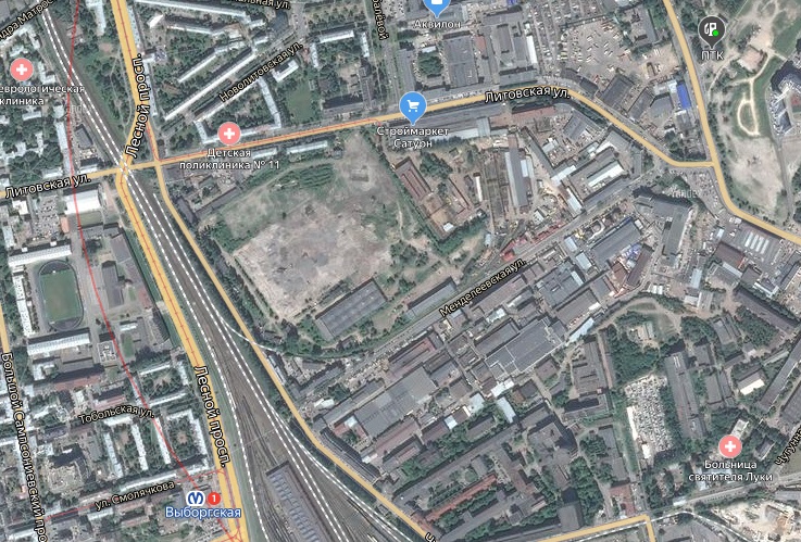 Указанное место в 2010 году постановлением Правительства СПб от 29 июня 2010 года N 867 "Об утверждении проекта планировки с проектом межевания территории, ограниченной Литовской ул., Менделеевской ул., Чугунной ул., в Калининском районе" было утверждено под строительство трамвайно-механического завода, в том числе комплекса по производству вагонов метро.