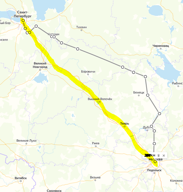 Мне сложно представить, что я еду из Питера в Москву не проезжая Любань, Окуловку, Бологое, ВВ, Тверь и т.п......