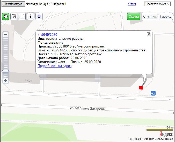 В рамках гос. контракта АО "Метрогипротранс" от 7 ноября 2019 г. № ПМ-21/2019 на выполнение работ по разработке проектной документации по объекту: "Строительство участка Красносельско-Калининской линии метрополитена от станции "Казаковская" до станции "Сосновая поляна" для выполнения инженерно-геологических изысканий выданы 12 новых ордеров по адресам:
