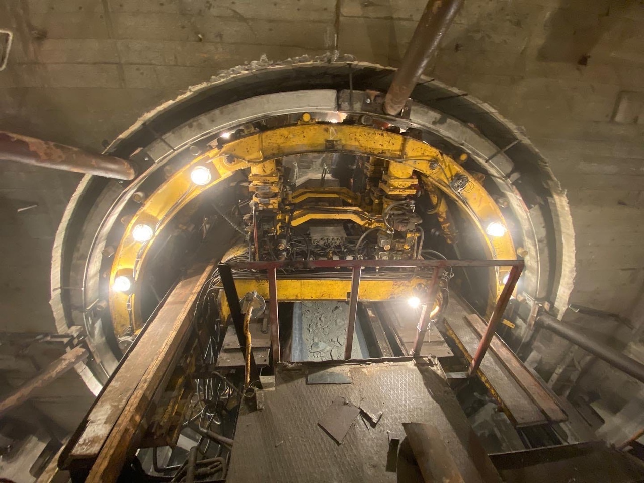 Испытание режущего органа КТ-1 5,6м в стартовой камере на 843 шахте. Щиту предстоит пройти тоннель длиною 2,5 км до 845 шахты.