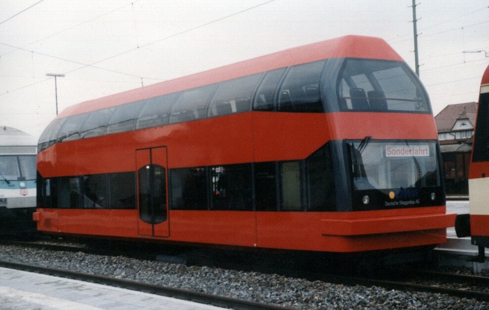Случайно наткнулся на фото немецких мотрис серии 670 от Kres. Двухосная двухэтажная пассажирская автомотриса. Так что пошел исследовать эту тему. Пассажирская двухосная автомотриса серии 670 представляет собой двухэтажный вагон, оснащенный дизельным двигателем. При постройке вагона использовались детали от автобуса. Мотриса была построена по заказу немецкой железной дороги заводами Дессау и Галле-Аммендорф немецкой Waggonbau AG (DWA). Рама вагона стальная, облегченная, на нее прикреплены оцинкованные листы, которые образуют наружную обшивку. Головные части изготовлены из армированного стекловолокном пластика. С двух сторон кузова имеется широкая двухстворчатая дверь, внутри салона имеются две винтовые лестницы на второй этаж. Первый демонстрационный образец был представлен общественности осенью 1994 года, а также в 1996 году на берлинской выставке Иннотранс. Вагон был окрашен в красный цвет, имел номер 670 000. Он так и остался демонстрационным, никогда не перевозив пассажиров. К 1996 году были построены еще шесть серийных вагонов, который работали в основном в Тюрингии, Саксонии-Ангальте и Рейнланд-Пфальце. В процессе работы возникали проблемы с кондиционером и охлаждением двигателя, кроме того, отсутствие туалетов отрицательно сказывалось на комфорте перевозок. Вагоны использовались как для перевозки туристов, так и в пассажирских перевозках. Однако успехом не пользовались и за время эксплуатации не раз меняли владельцев, или же были отставлены. Длина вагона 16332 мм, ширина 3070 мм, высота 4630 мм. Мотриса развивает скорость 100 км\ч. В вагоне использован двигатель MTU 6V 183 TD 13 мощностью 250 кВт. В мотрисе применена гидромеханическая передача. Вагон имеет 78 мест для сидений, предусмотрена также перевозка 32 стоячих пассажиров. Модель автомотрисы в ТТ изготавливается фирмой Kres и является новинкой 2019 года. Изготавливается состав 670 0002, работавший в качестве туристического. Эпоха V — VI. Модель оснащена мотором. Выпускается под артикулами 6702 и 6702D. Последняя оснащена цифровым декодером. Для декодера предусмотрен разъем NEM651. Модель оборудована светодиодным освещением, переключением свечения фонарей белый/красный в зависимости от направления движения.