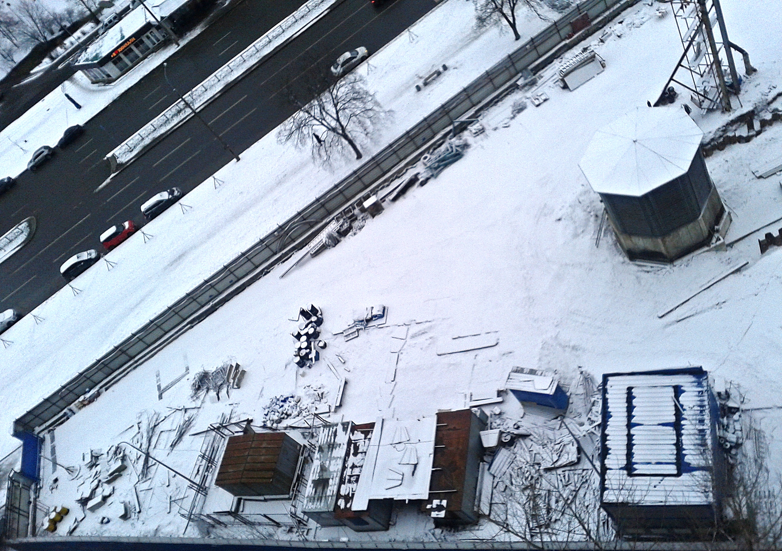 Сегодня ехал мимо стройплощадки 467 шахты - верхнюю перекладину на самодельном кране над шахтой вернули обратно.
