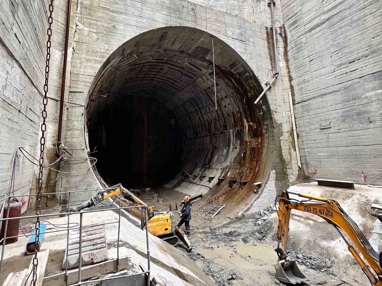 Его перенесли не из-за поломки вертикального конвейера, а для того, чтобы начать сооружение внутренних конструкций в построенной части тоннеля (плиты перекрытия вентканала и путевого бетона). Иначе к ЧМ-2018 не успели бы.