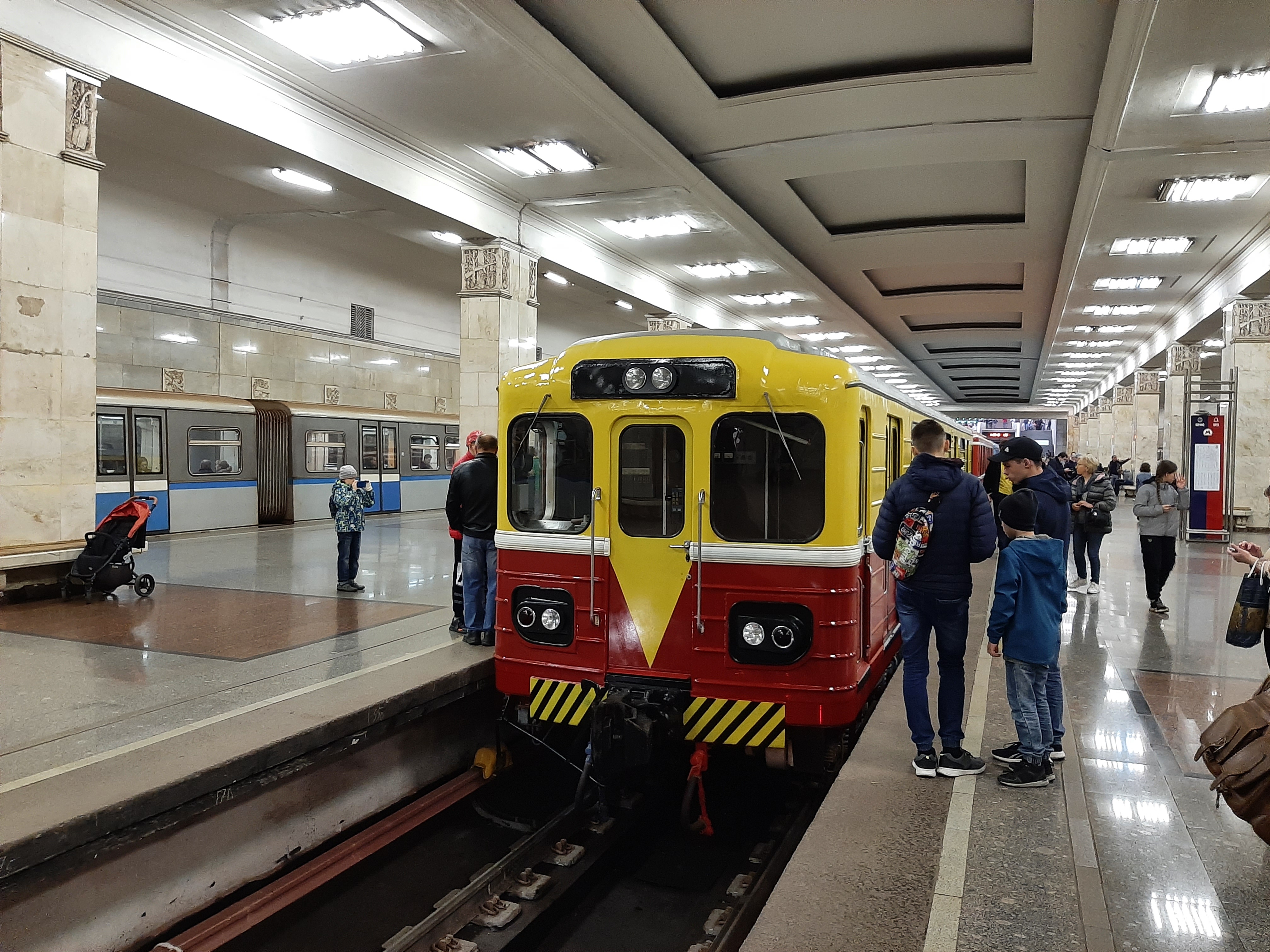 Кто ж их мыть будет (и когда). Ну и не просто сталинское, а военное. Эти всегда были тёмные, да (на "Бауманской" люстры над платформами из изначального проекта только при реконструкции в 2010х повесили). Новокузнецкая и старый кусок Павелецой-радиальной туда же. Хотя до каких-ниубдь Пражской, Чкаловской или Волжской им ещё далеко.Сталинское наследие (от "Партизанской" в центр).