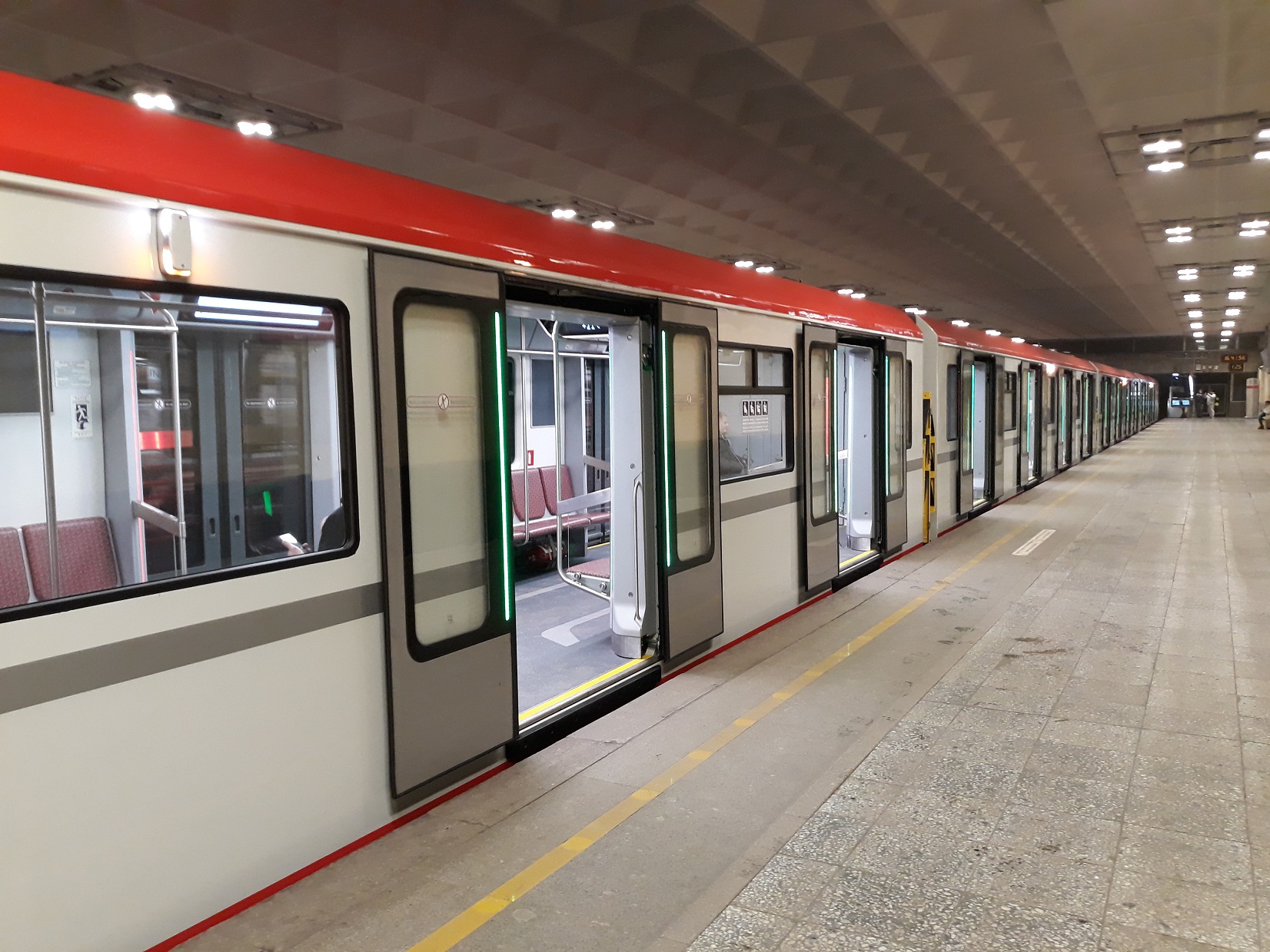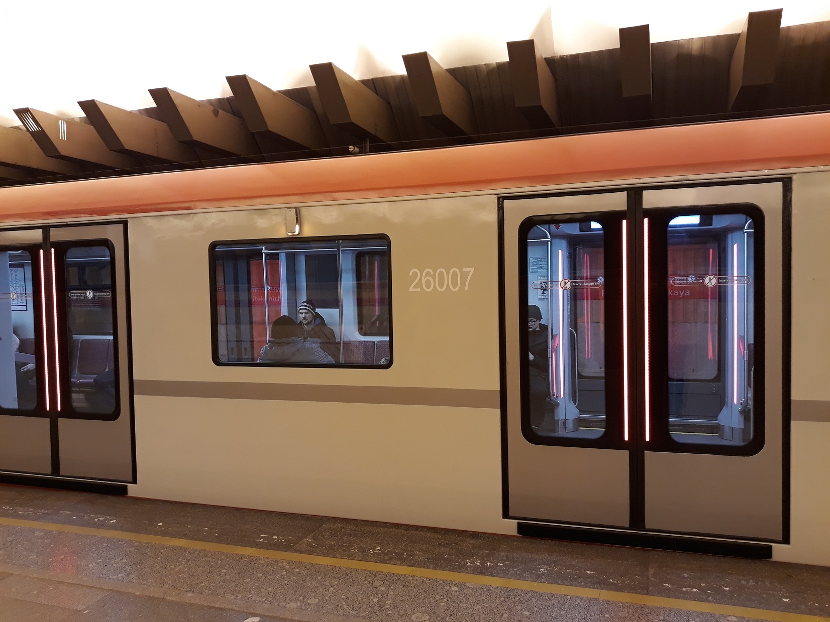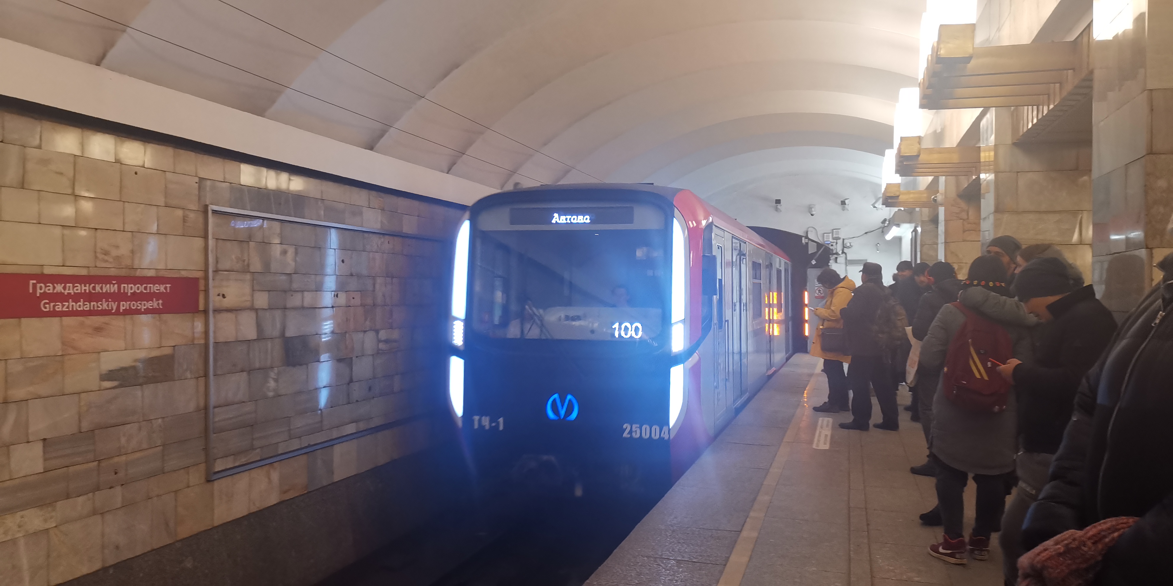 После 12 ноября обычно утром (7:00-9:00 часов) первый состав с пассажирами проезжает до Девяткино и обратно в депо. Про второй состав пока ничего неизвестно, но сегодня испытания его были интересными. После 14:00 выкатили его без пассажиров на прогон до Площади Ленина, обернулся, забрал губернатора и доехал с ним до Балтийской, начал принимать пассажиров и поехал до Проспекта Ветеранов. Его встретил я на Кировском заводе. В 15:46 он приехал на Ветеранов, ехал до Девяткино, а от неё уже поехал до Автово (~16:40), где высадили всех пассажиров в 17:22. Интересно мне когда все машинисты закончат обучение на нем