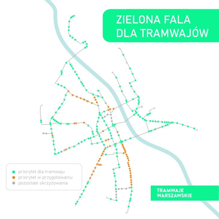 В городе активно внедряют (https://www.portalsamorzadowy.pl/smart- ... 24479.html) приоритет на светофорах: датчики считывают вагон на подъезде и максимально быстро включает зелёный сигнал. Сегодня такое работает на 187 перекрёстках — это 71% от всех пересечений на сети, в планах за ближайшие годы довести показатель до 90%.
