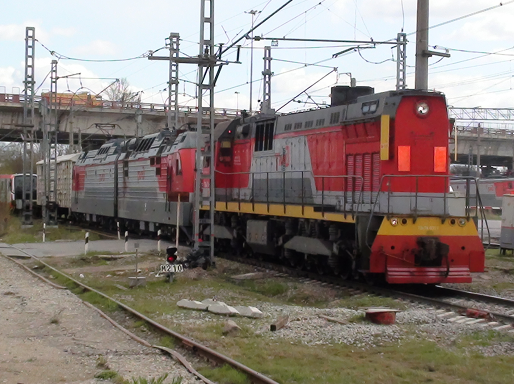 На подъезде к Сортировочной толи сдох 2ЭС4К, толи у него смена закончилась...Вобщем, за составом приехал восьмиосник ТЭМ7А.
