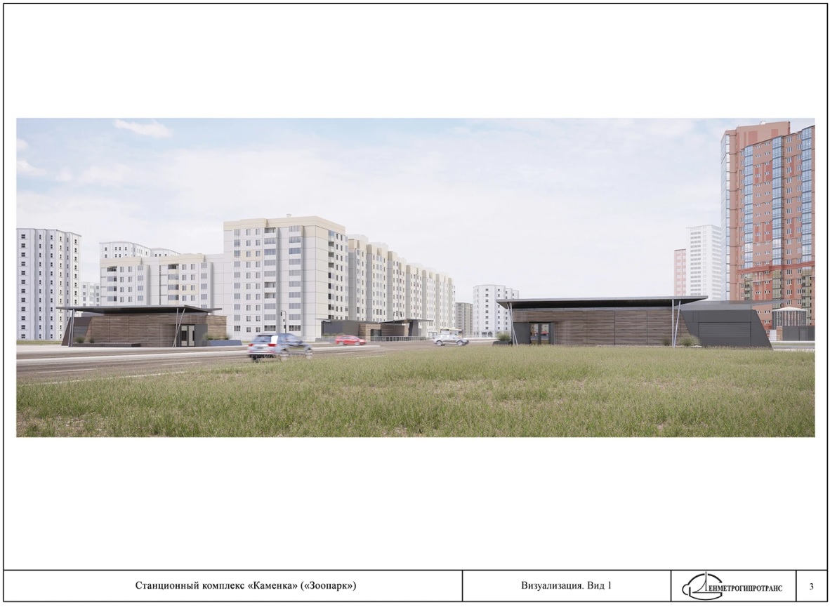 Вторая отсечка — это «Зоопарк», к которому линия завернет через Юнтолово, проскочив под ЗСД. Она, как и «Яхтенная» — мелкого заложения, на ней также четыре эскалатора. И вестибюль тоже будет находиться под землей, двери в него — через подуличный переход, который разместят под перекрестком Комендантского и Шуваловского проспектов.«Главным акцентом композиции по наземным павильонам и венткиоскам является парящий над открытым лестничным спуском навес, выполненный из металлического каркаса с отделкой из металлических монохромных панелей. Примыкающий к зоне входа венткиоск своей формой подчеркивает динамичную форму входной композиции».