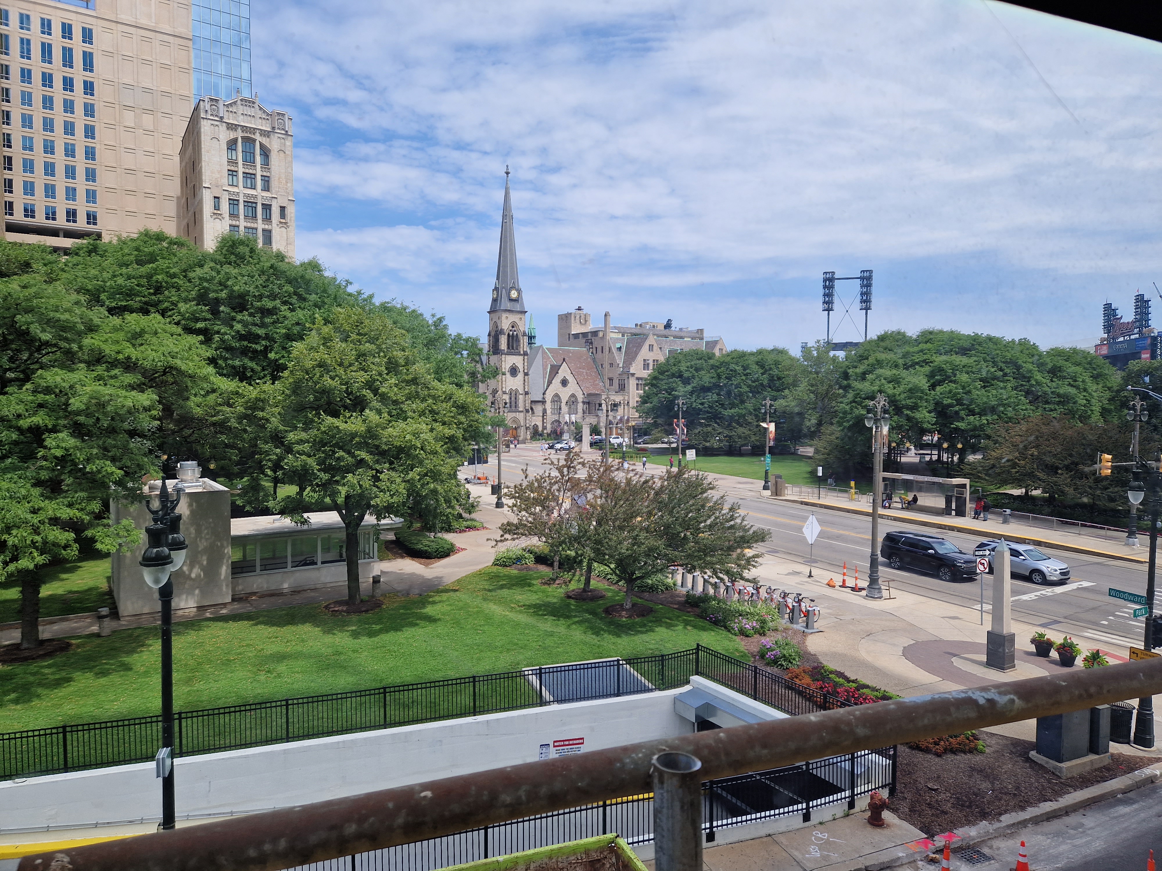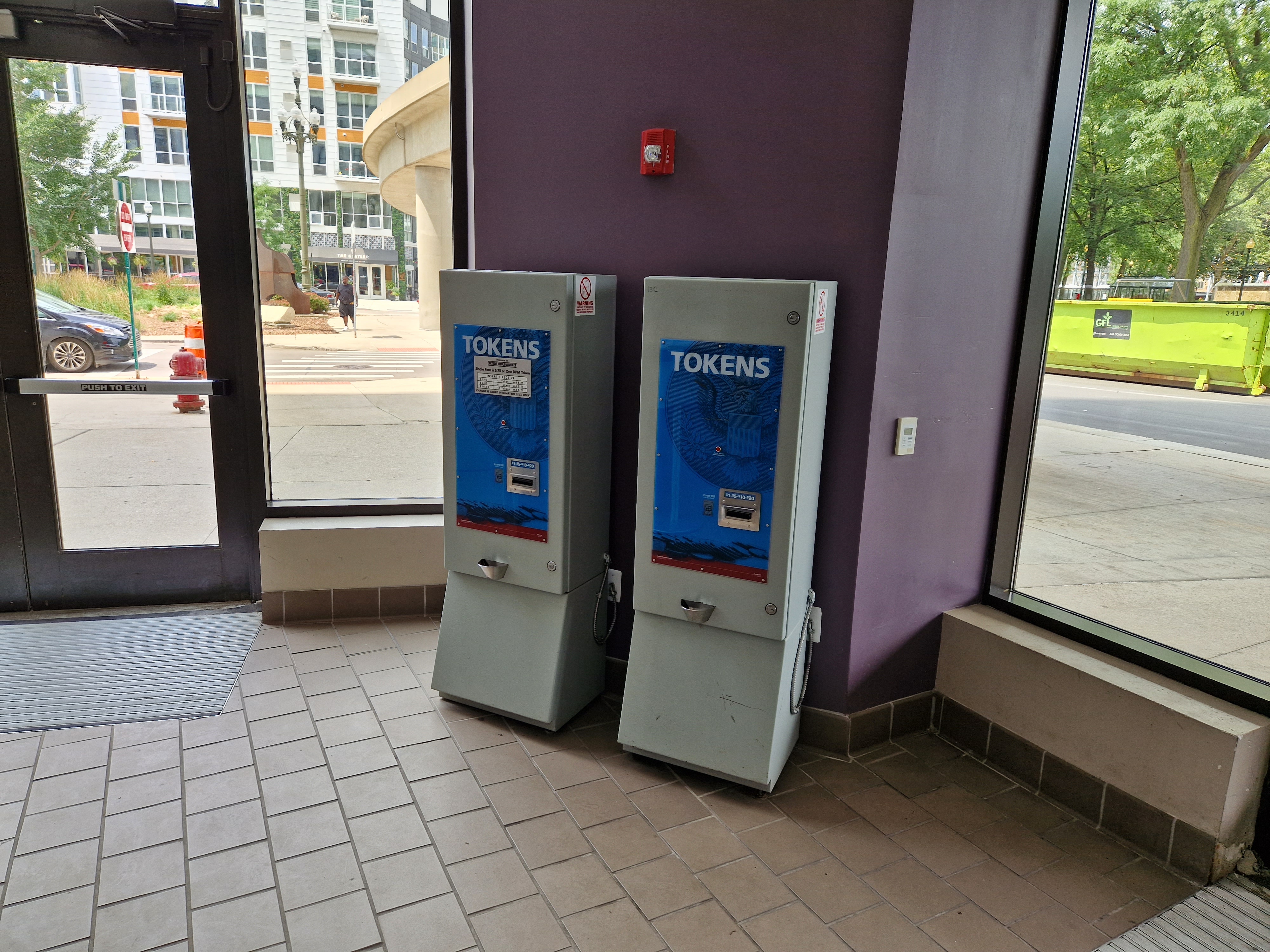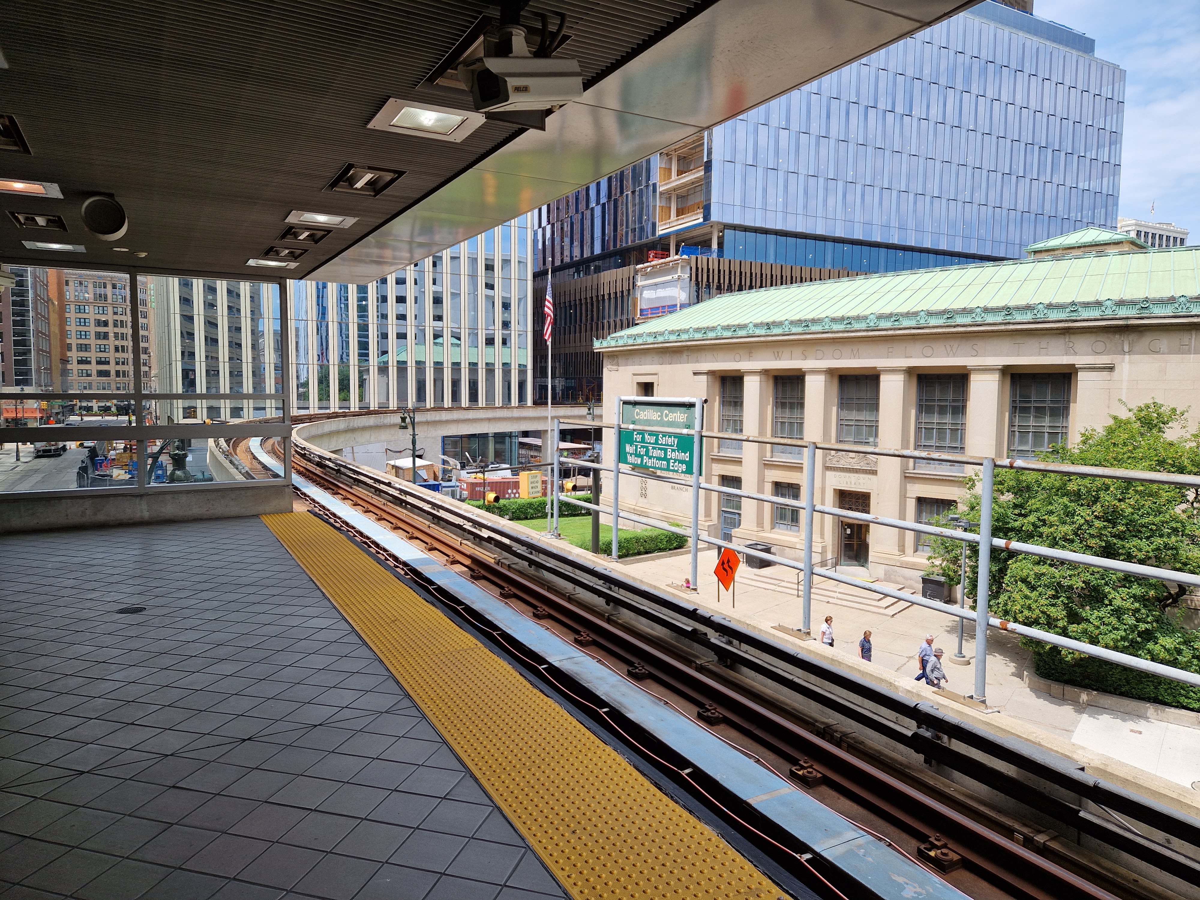 Надземная железная дорога, кольцо-однопутка, два автоматических вагончика ходят по часовой стрелке вокруг даунтауна, 4.73 км, около получаса на весь круг. Проезд - 75 американских копеек, либо монетами в турникет, либо жетончик в разменном автомате купить. Что интересно, городской трамвай при этом вообще бесплатный.
